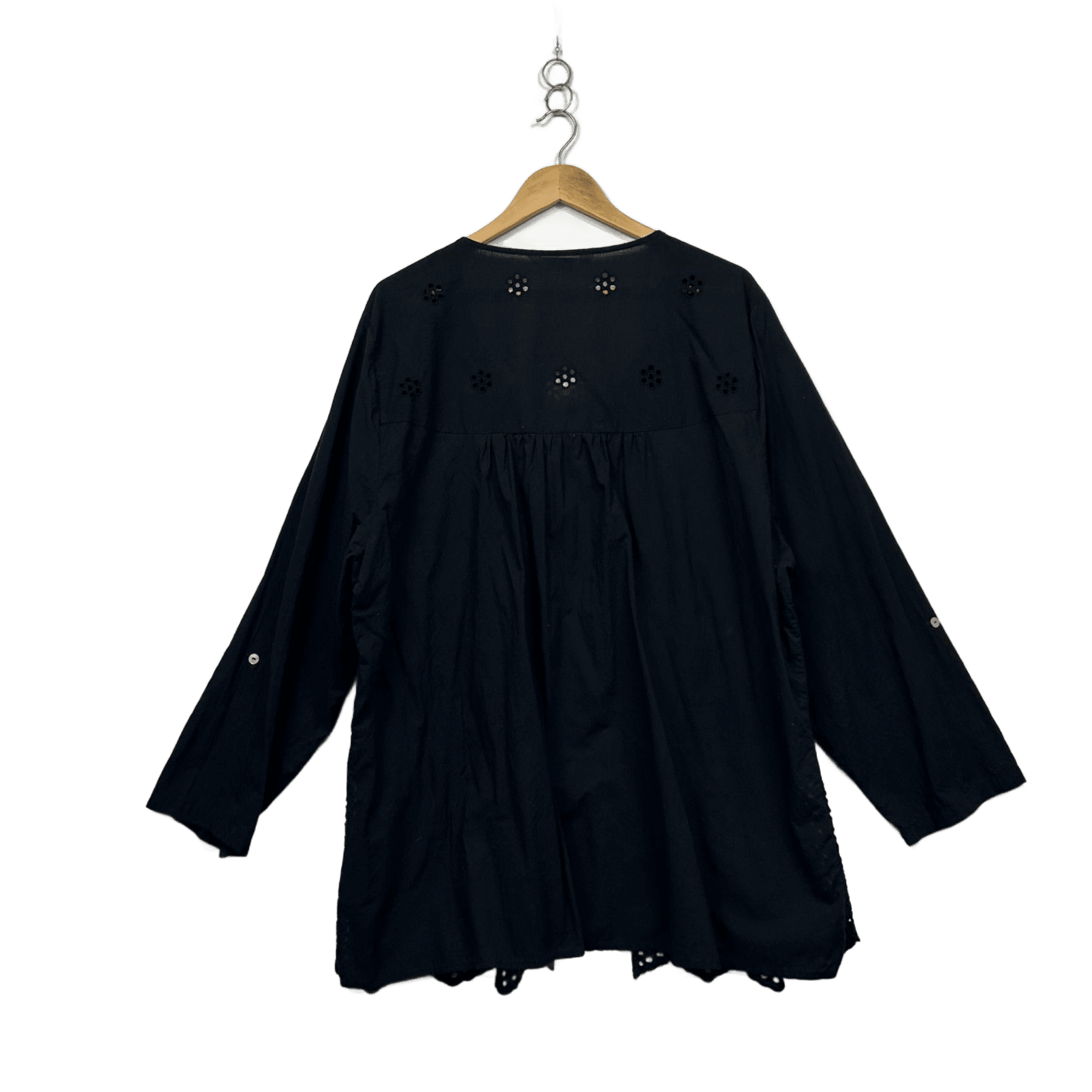 Beme Women's Black Cotton Long Sleeve Embroidered Top Blouse Size 24
