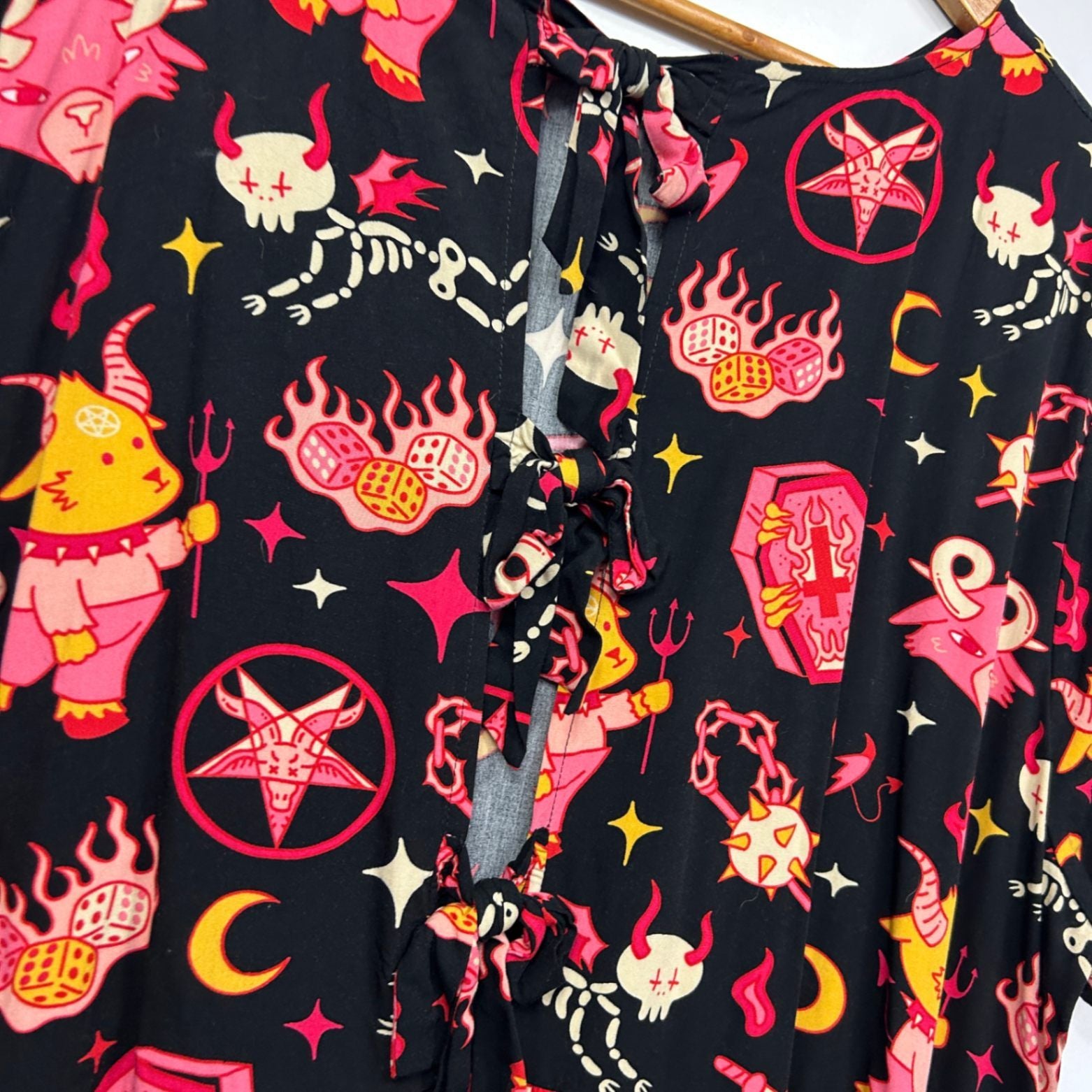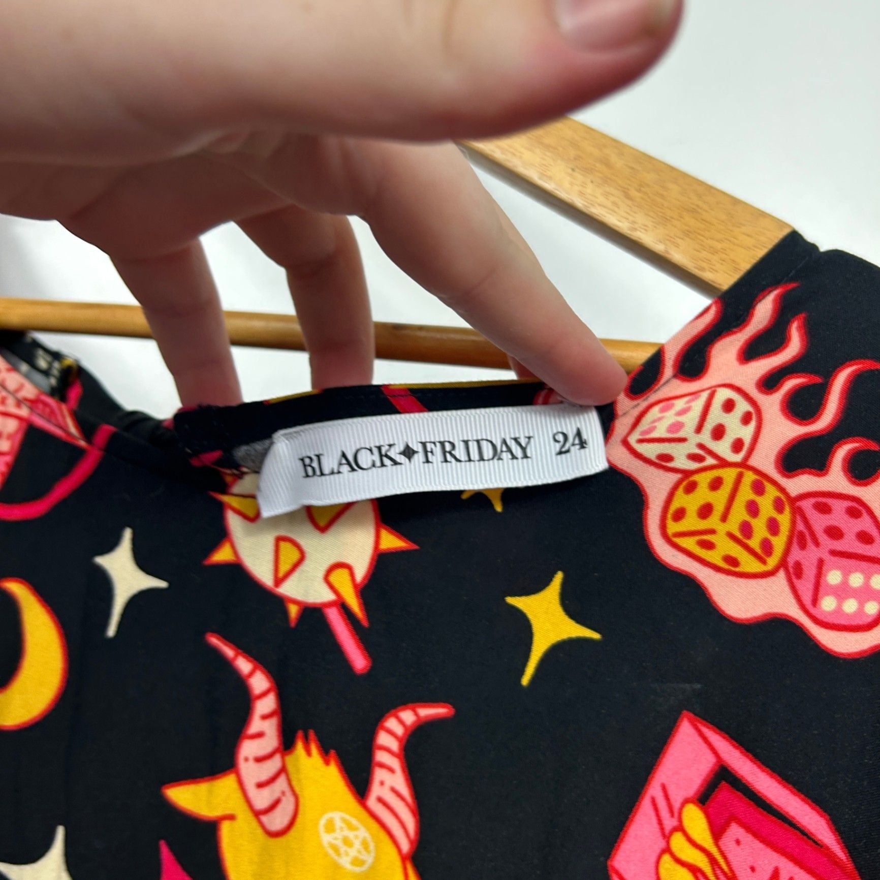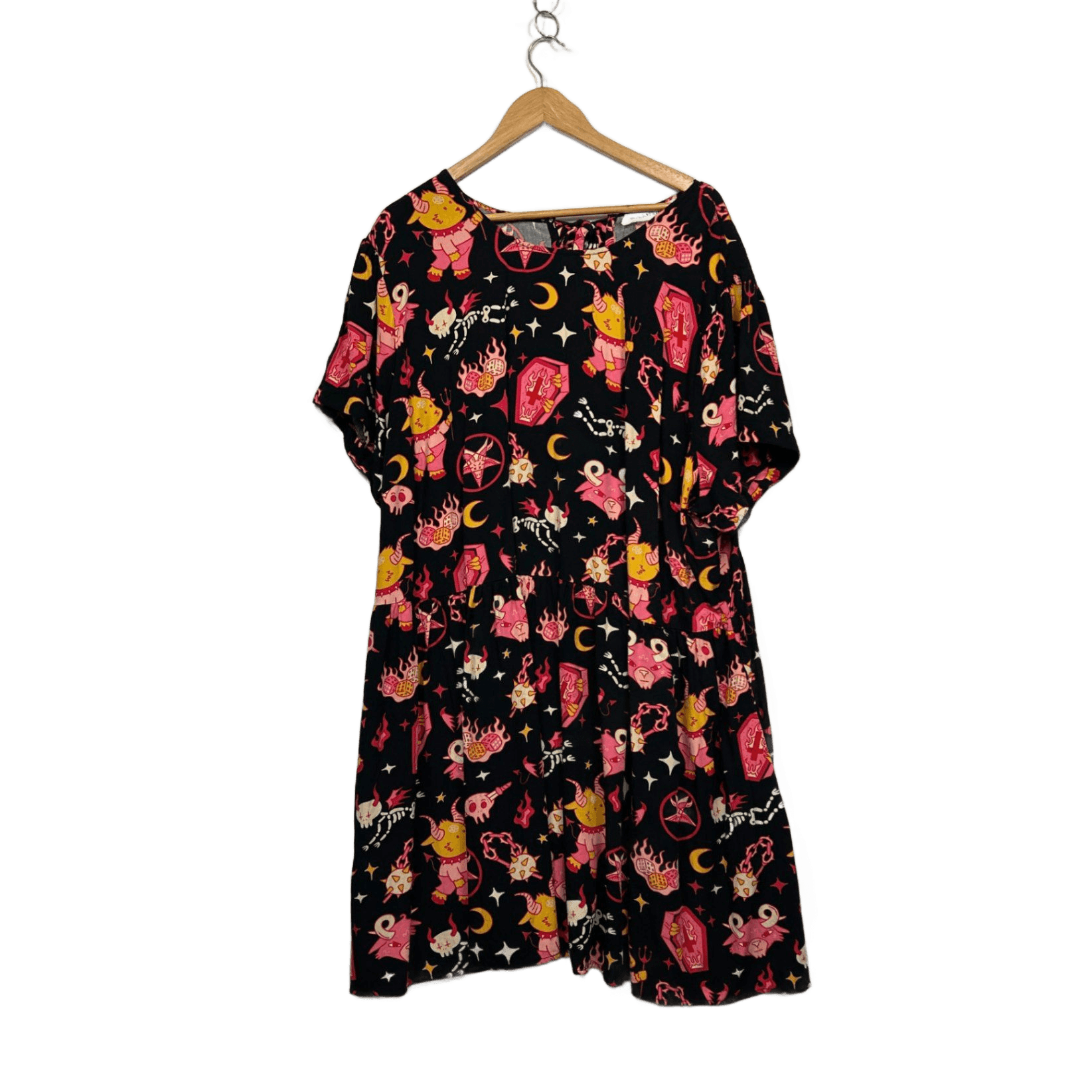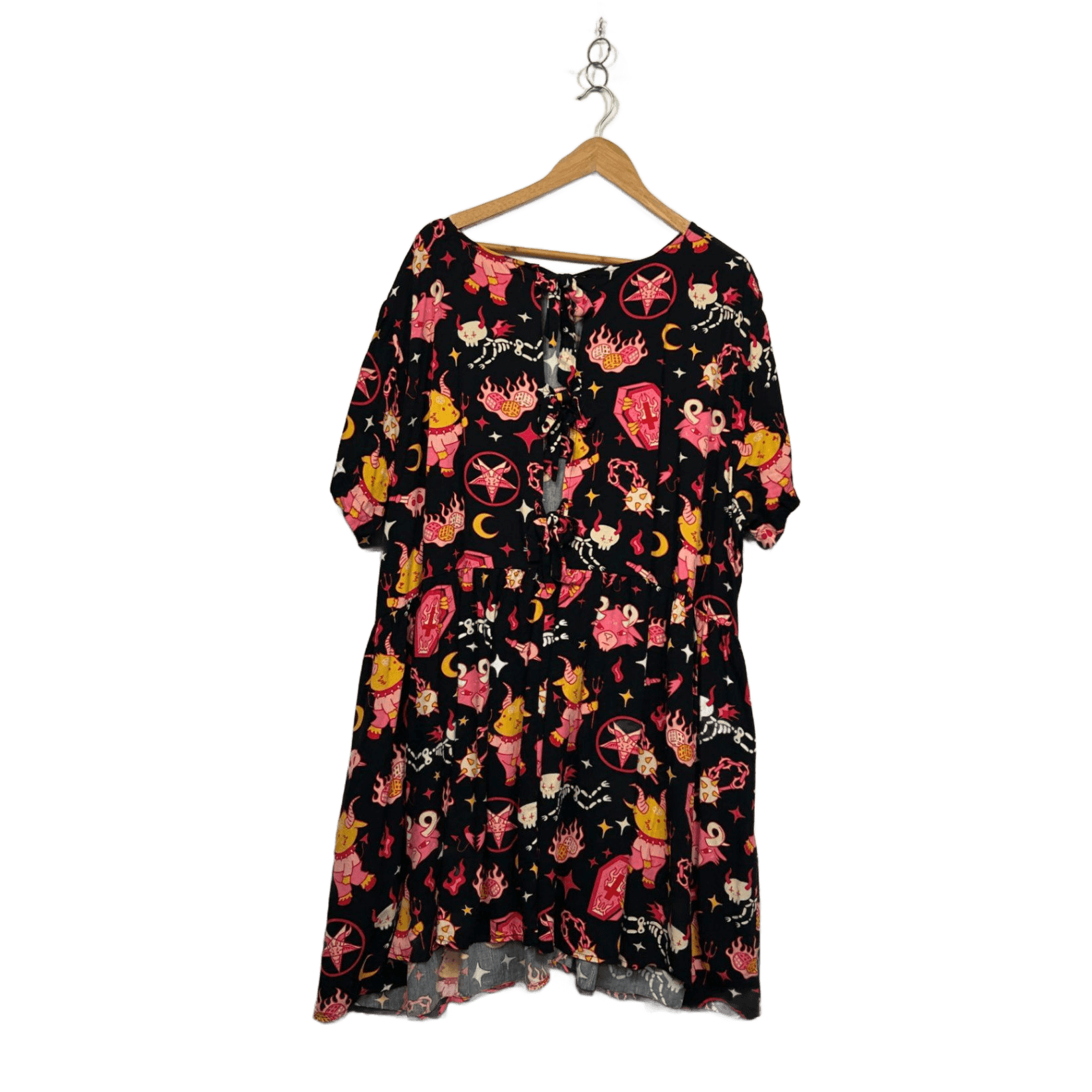 Black Friday Gothic Smock Dress Tarot Halloween Spooky Print Size 24