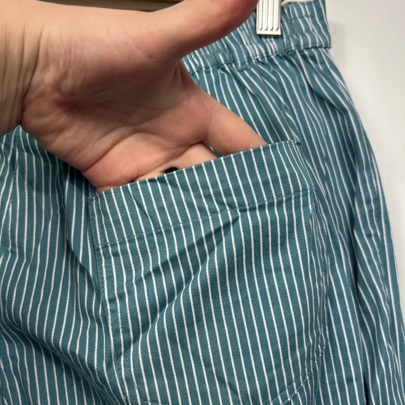 Black Pepper Pull On Trousers Pants Size 16 Green White Stripe Cropped Pockets