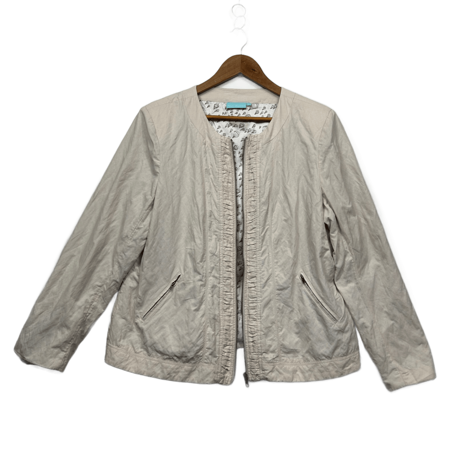 Blue Illusion Jacket Size 16 18 3XL Beige Lightweight Jacket Zip Front Pockets