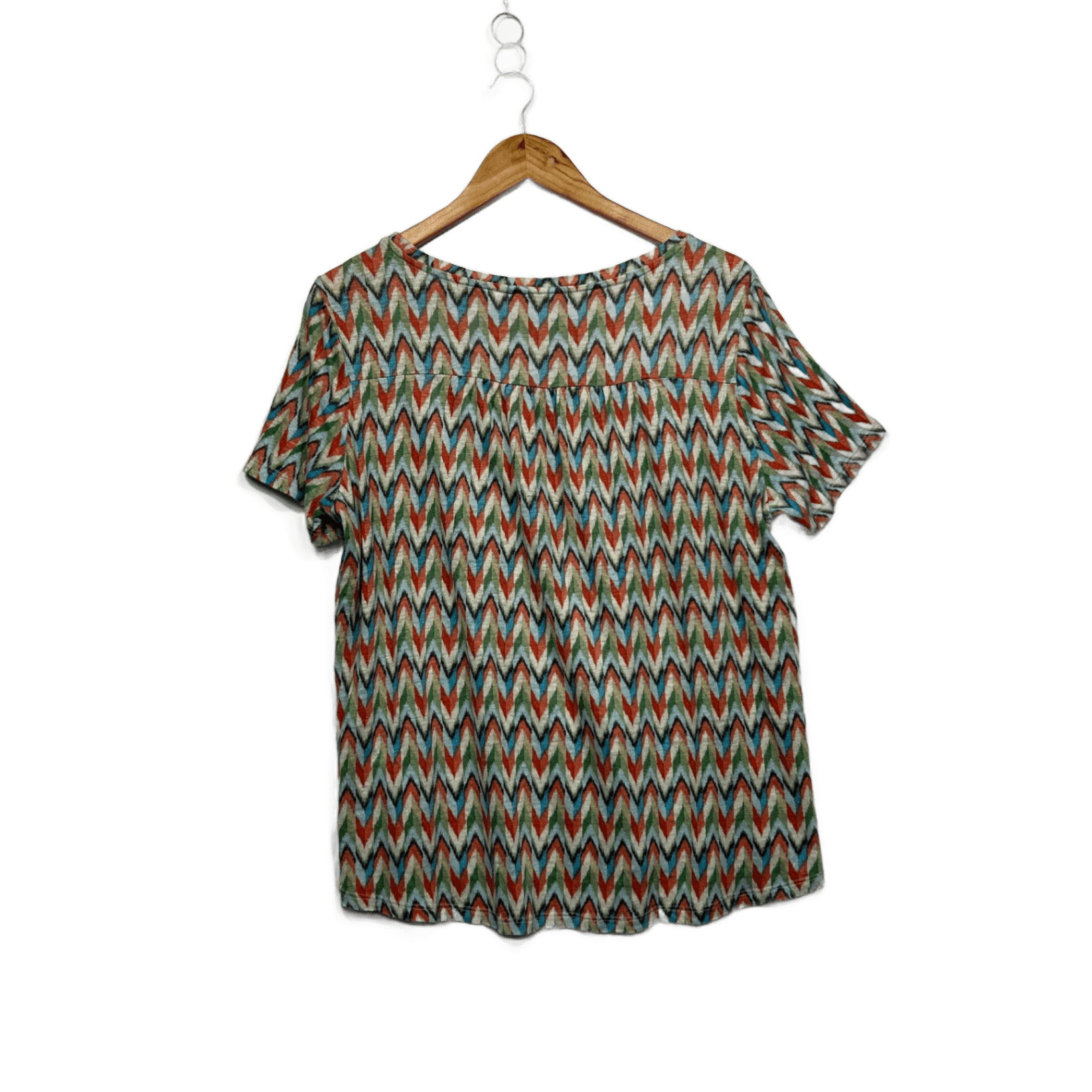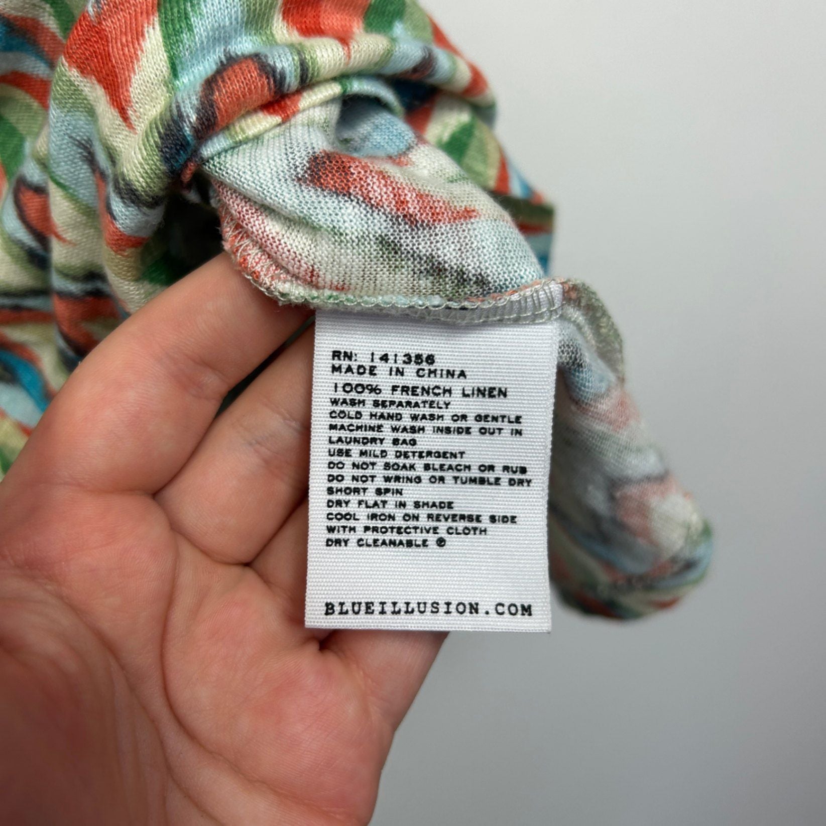 Blue Illusion Multicoloured Short Sleeve 100% French Linen Top Size Large