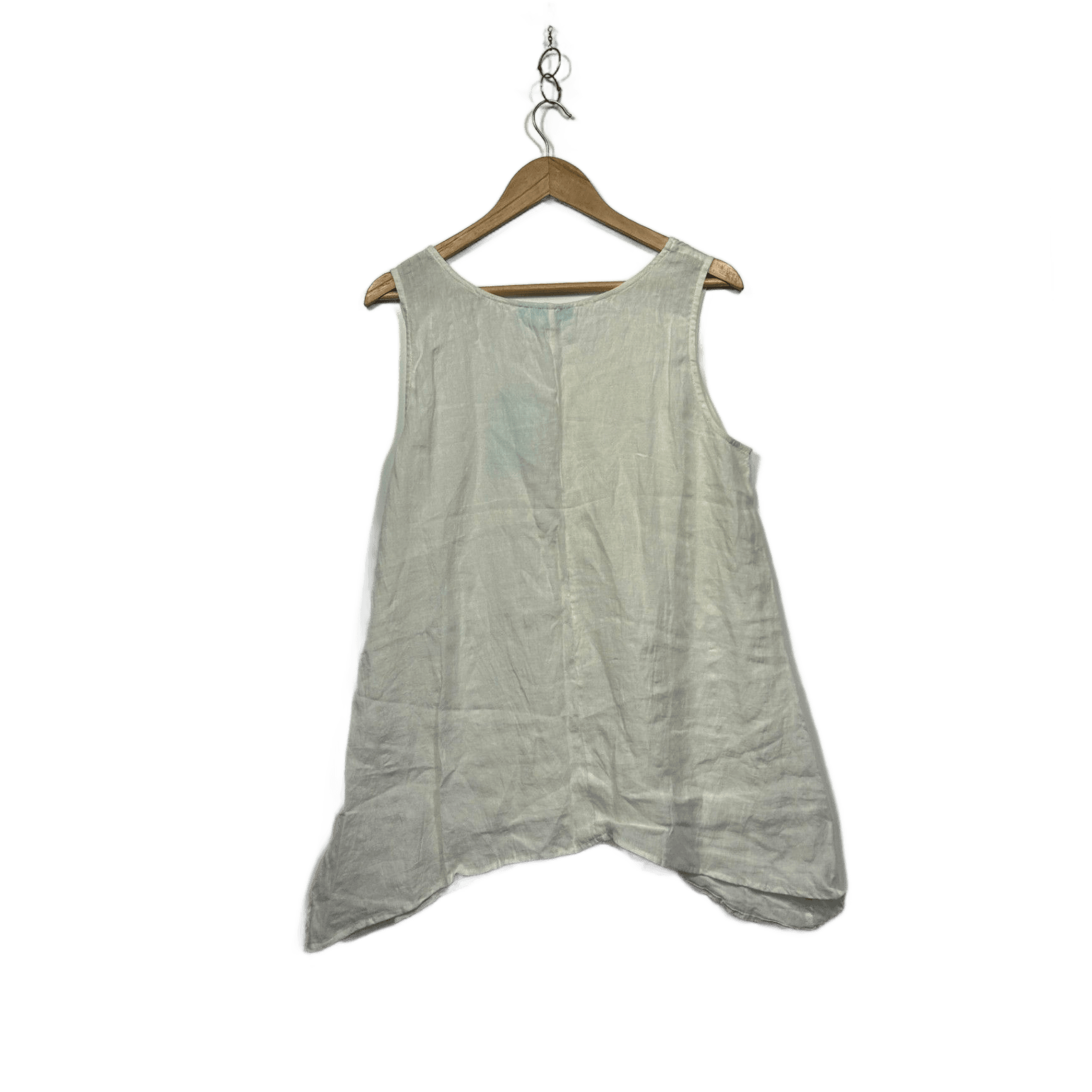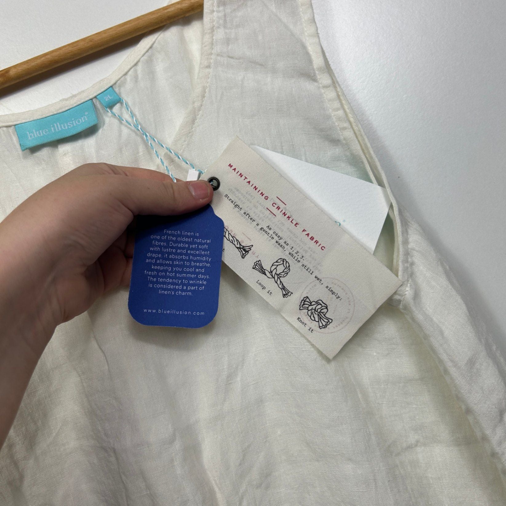 Blue Illusion White Linen Sleeveless Blouse Tunic Top Size 2XL