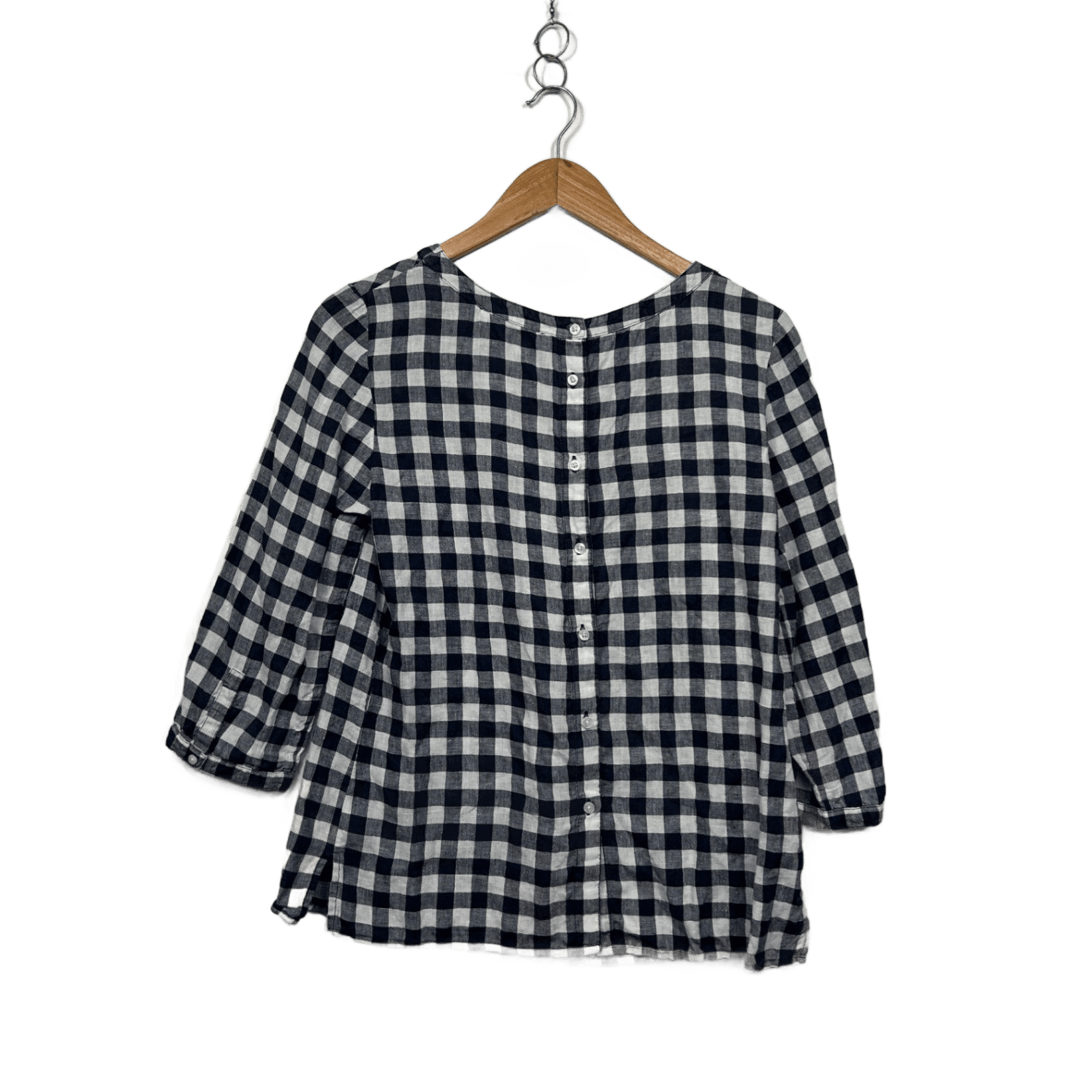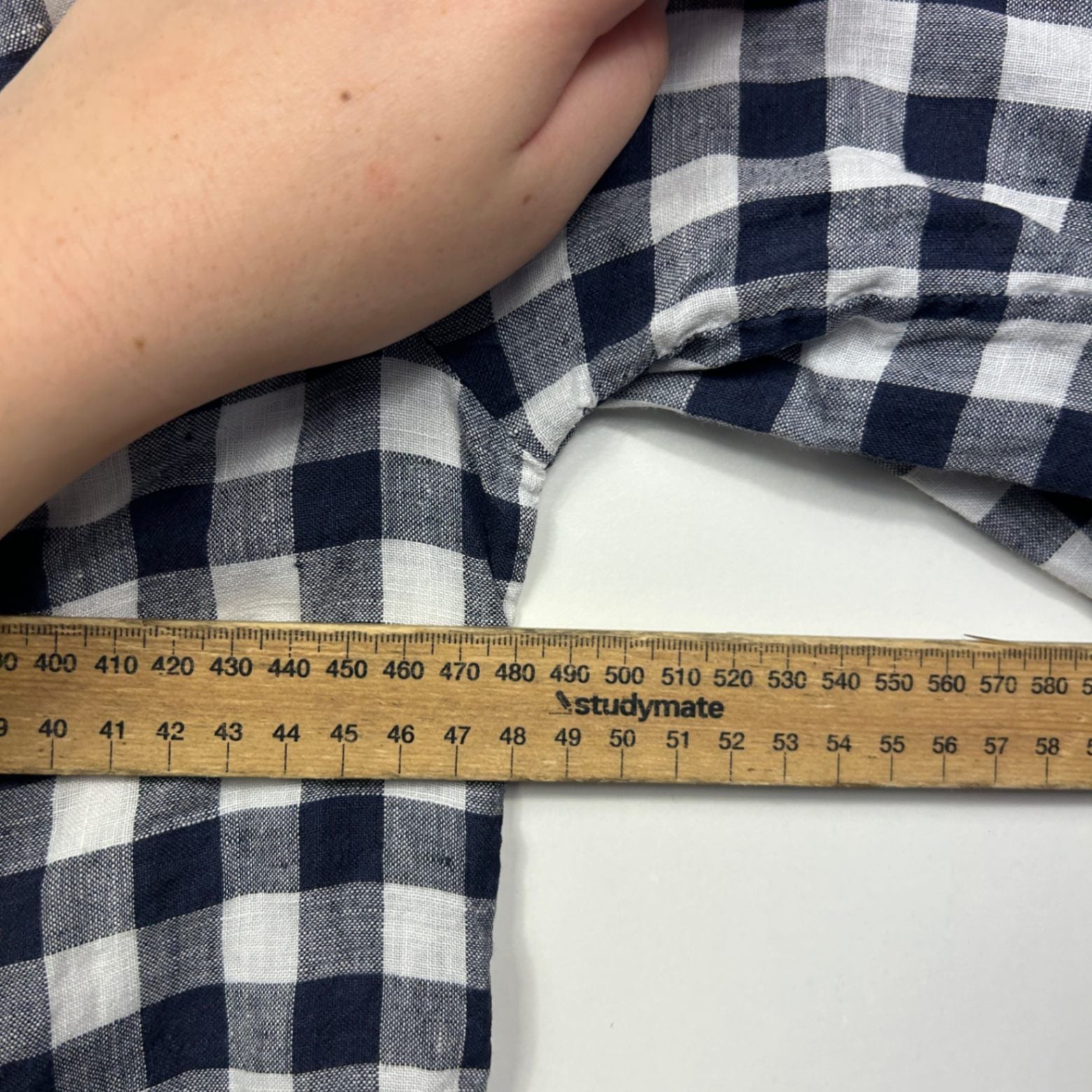 Boden Navy White Linen 3/4 Sleeve Gingham Check Size 12