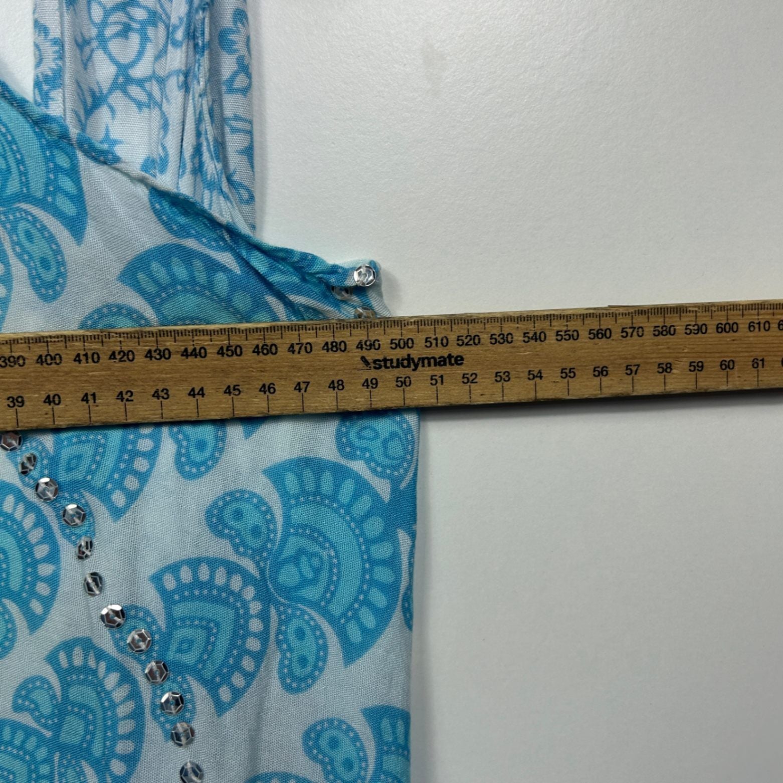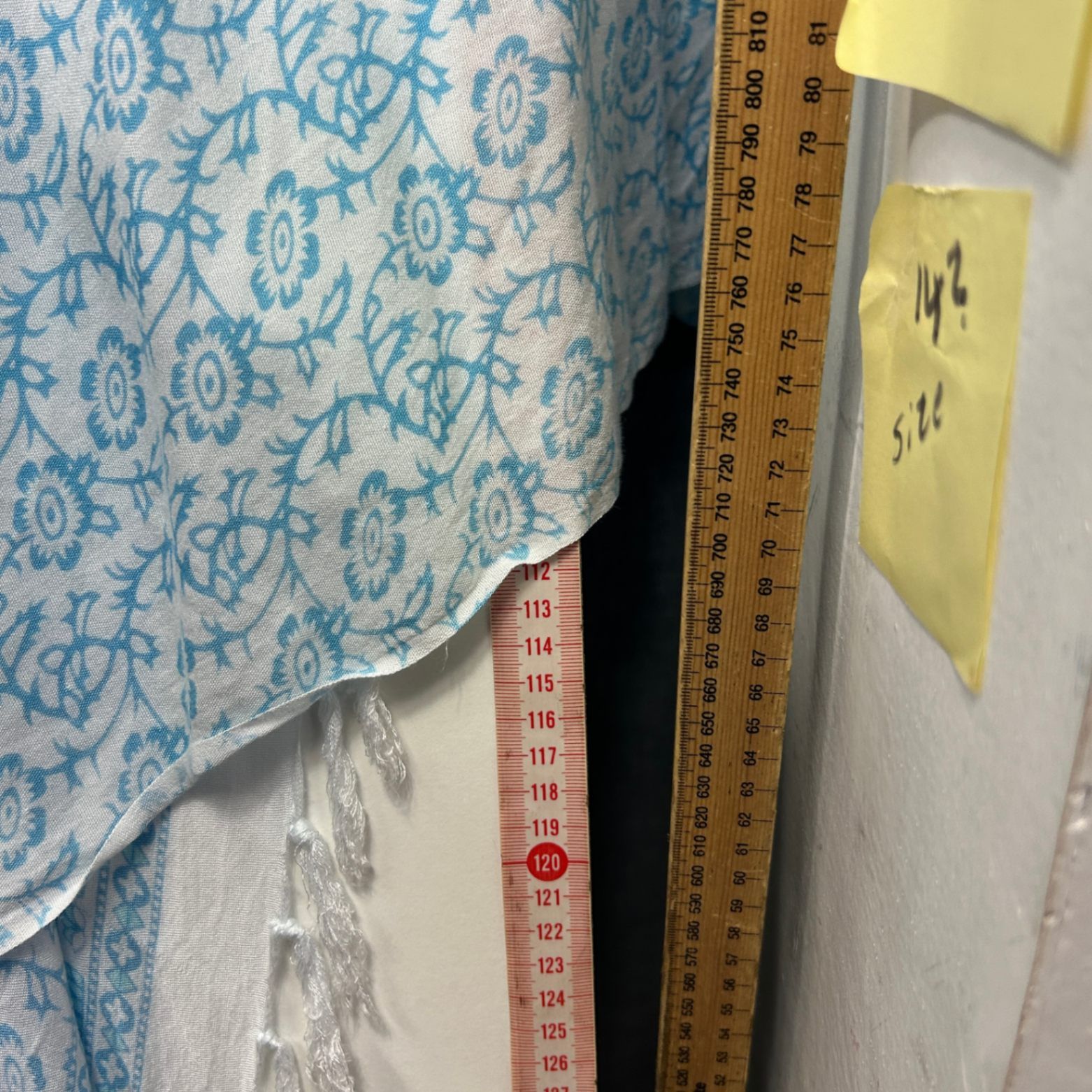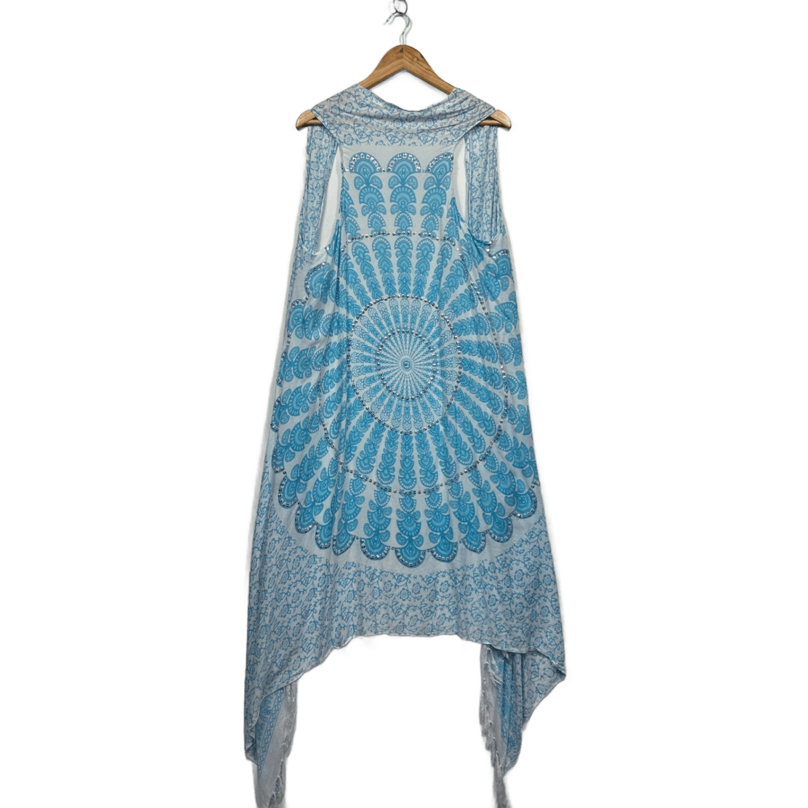 Boho Hippie Blue White Paisley Sequins Sleeveless Vest Open Front Kimono Top