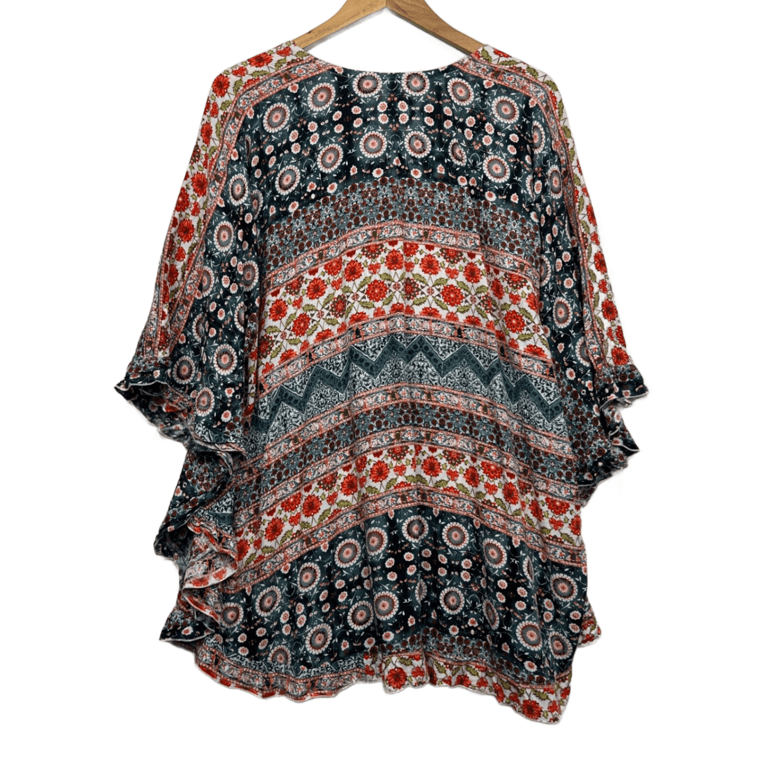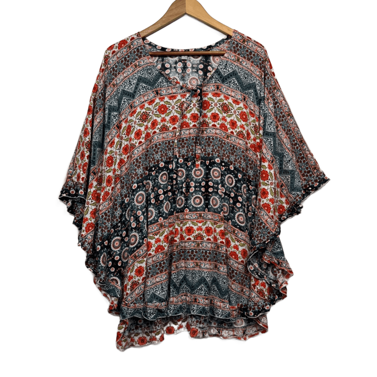 Boho Kaftan Top One Size Plus Short Sleeve Multicoloured Floral