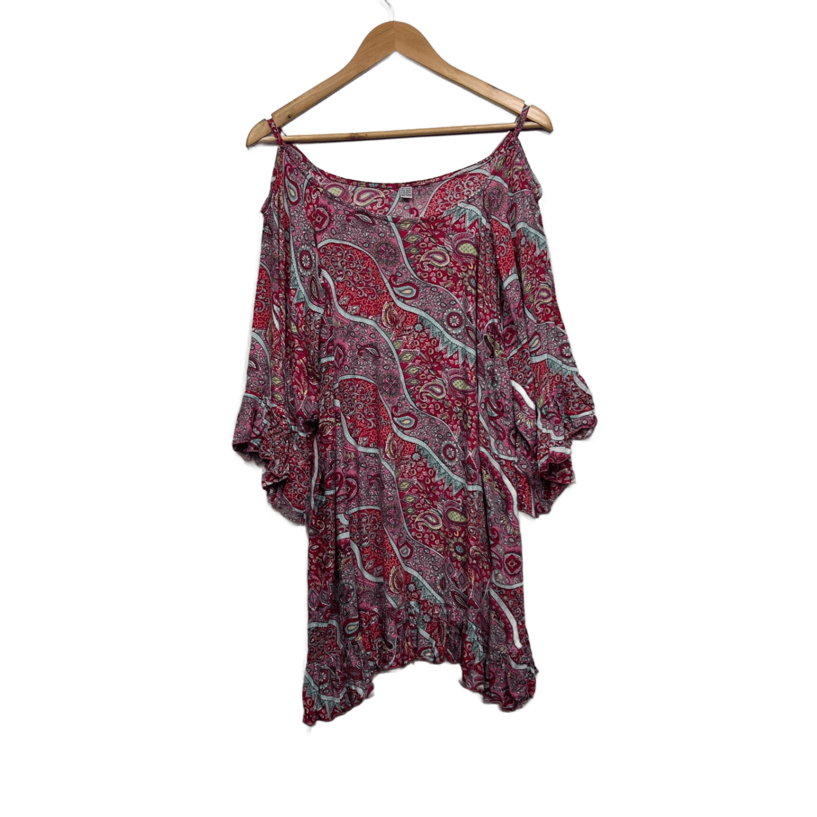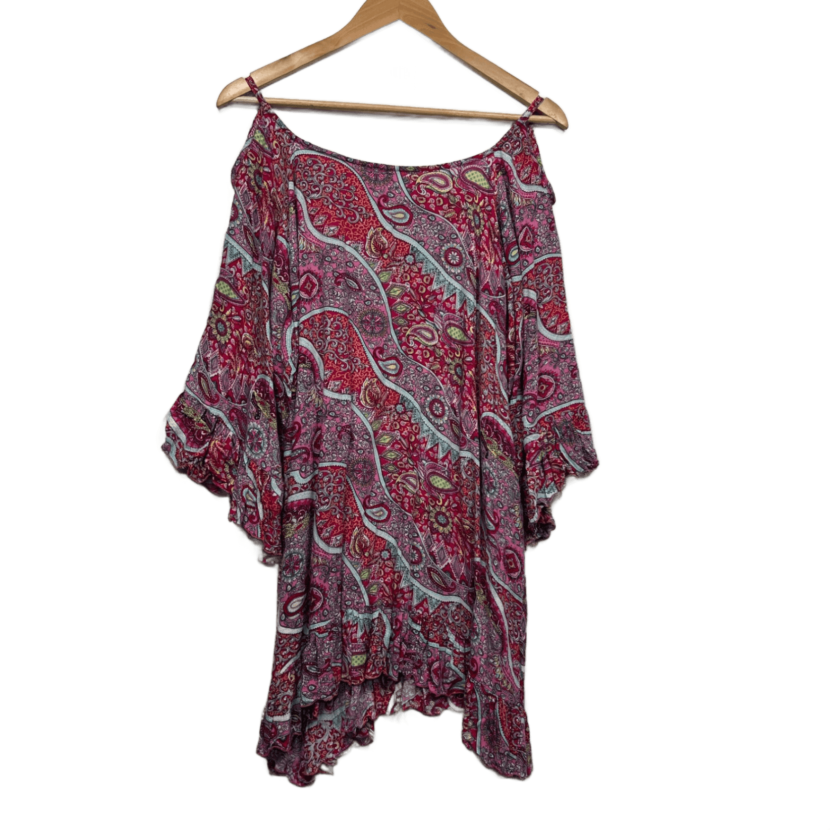 Boho Paisley Print Cold Shoulder Sleeve Rayon Tunic Top 14 16