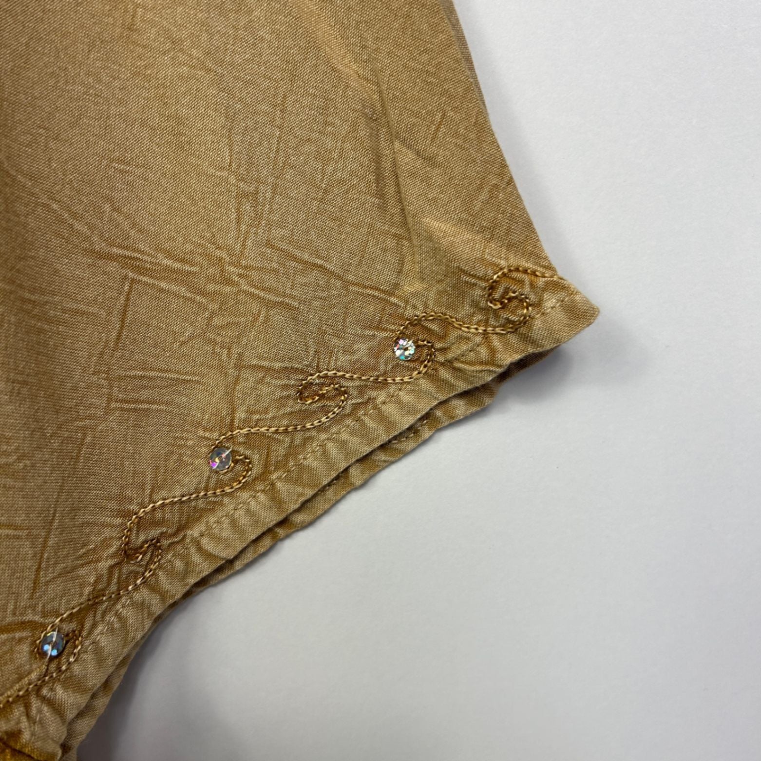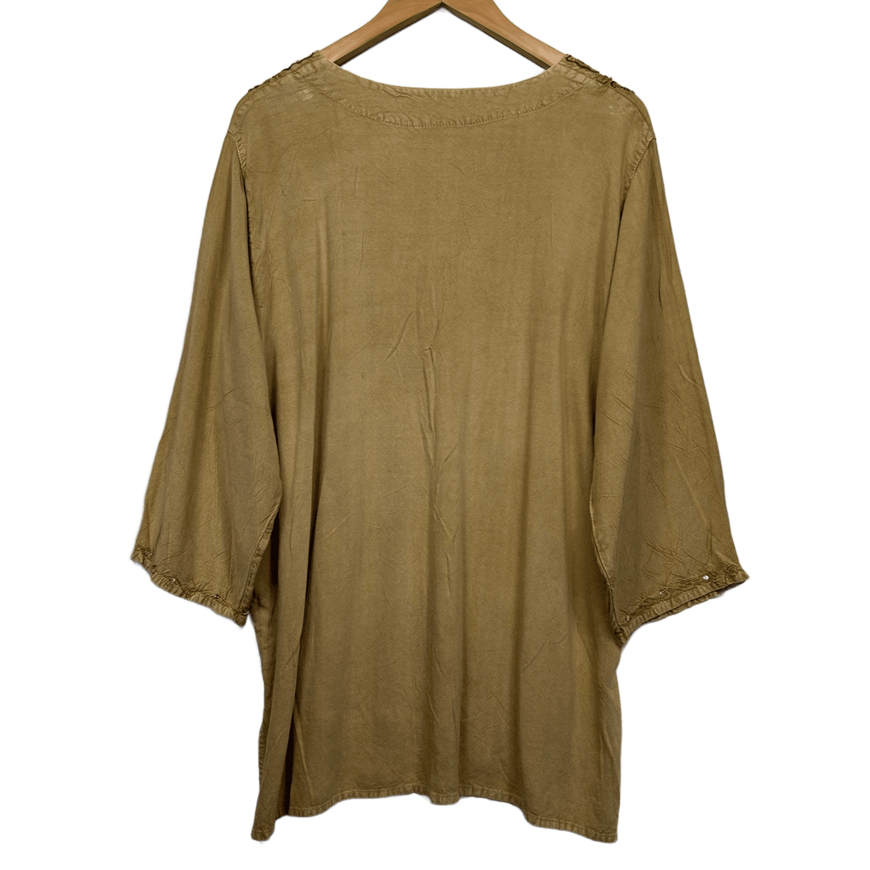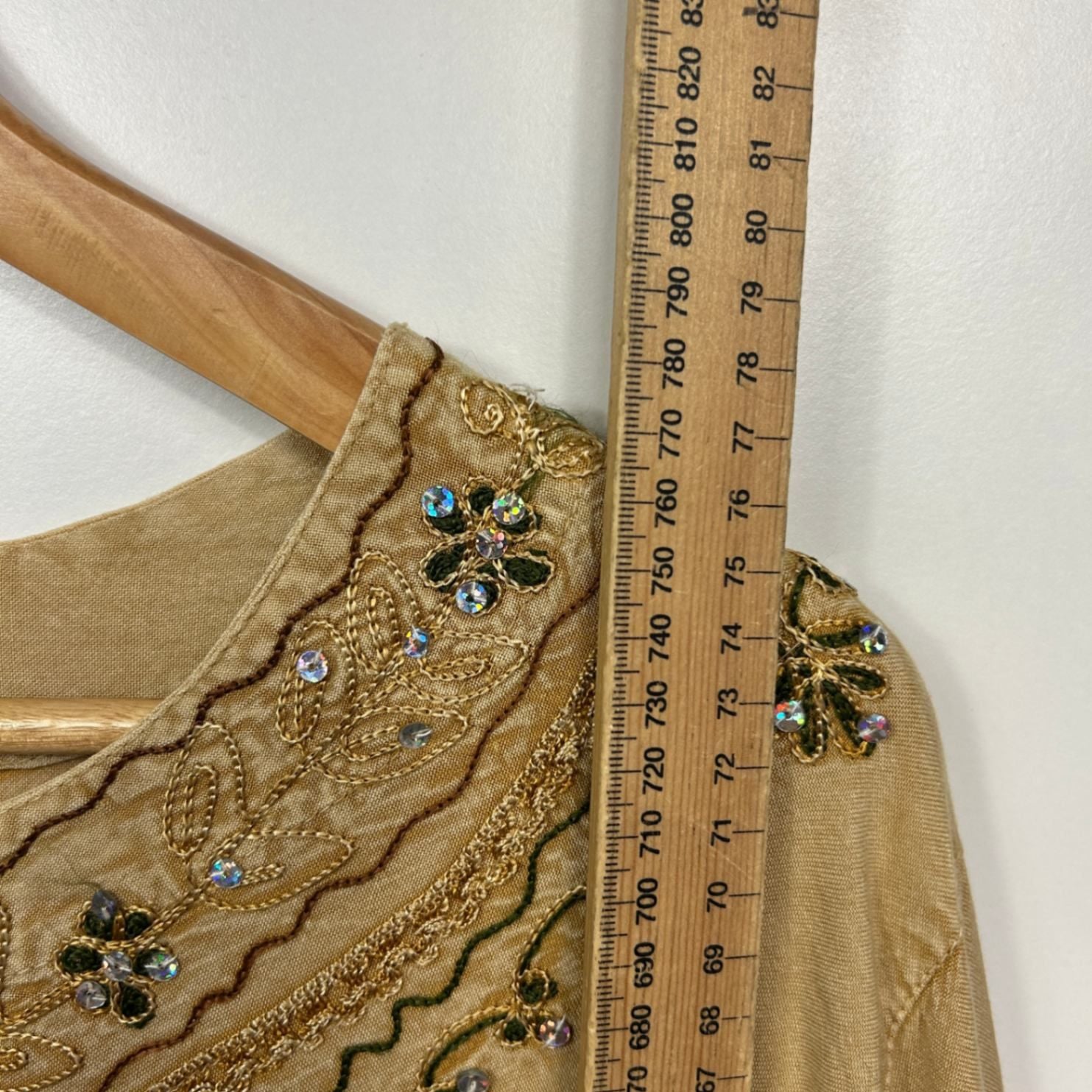 Boho Top Size 16 Biege Sequins Long Sleeve Hippie Festival Embroidered
