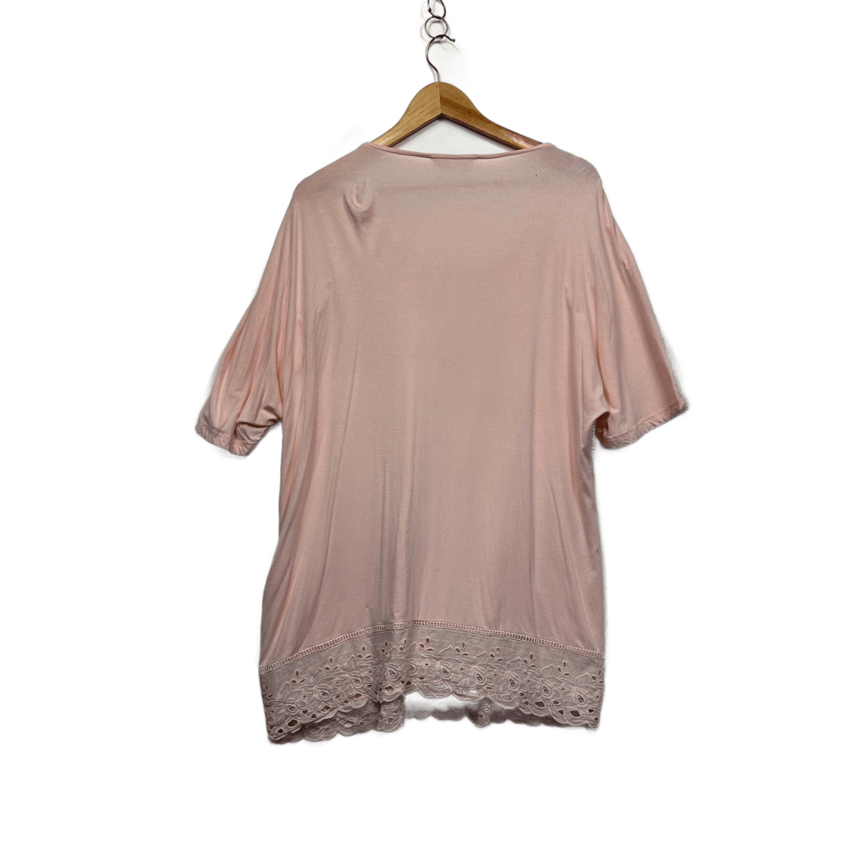 Boo Radley Pink Short Sleeve Embroidered Crochet Blouse Size 20