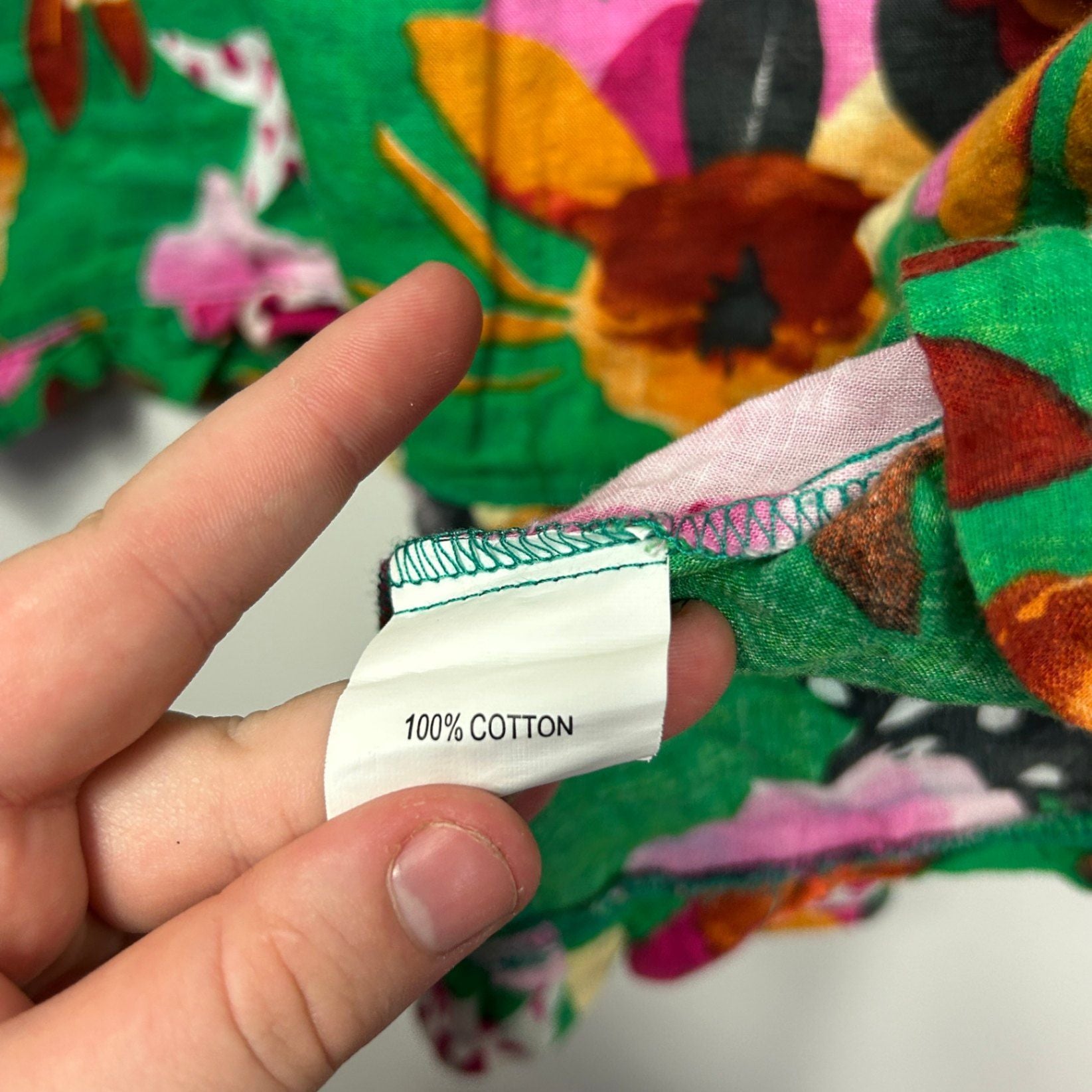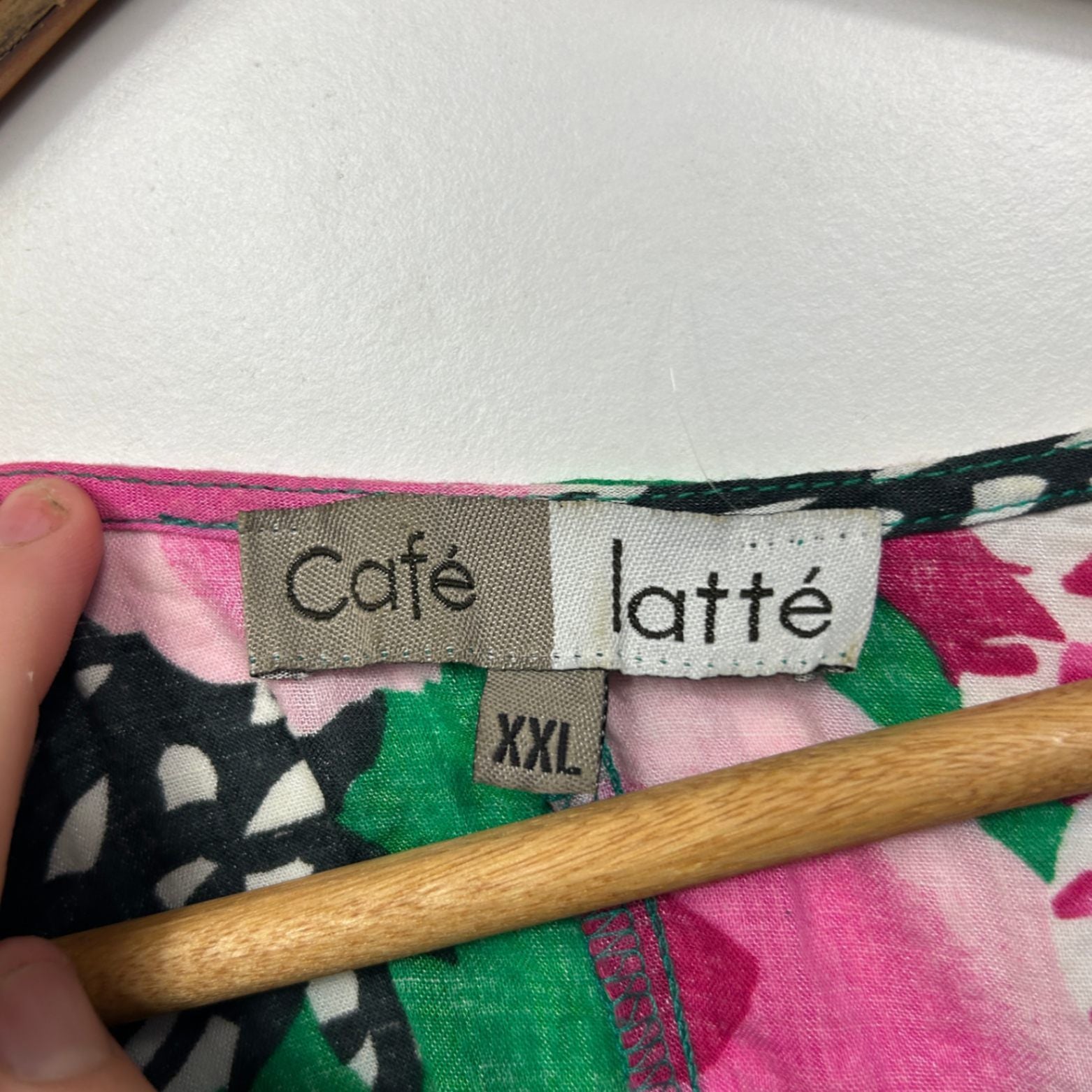 Café latté Multicoloured Floral Short Sleeve 100% Cotton Top Size 16 18 2XL