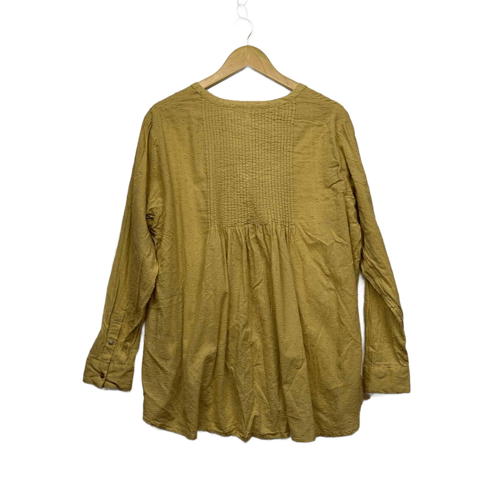 Capture Mustard Pleated Cotton Long Sleeve Top Blouse Size 18