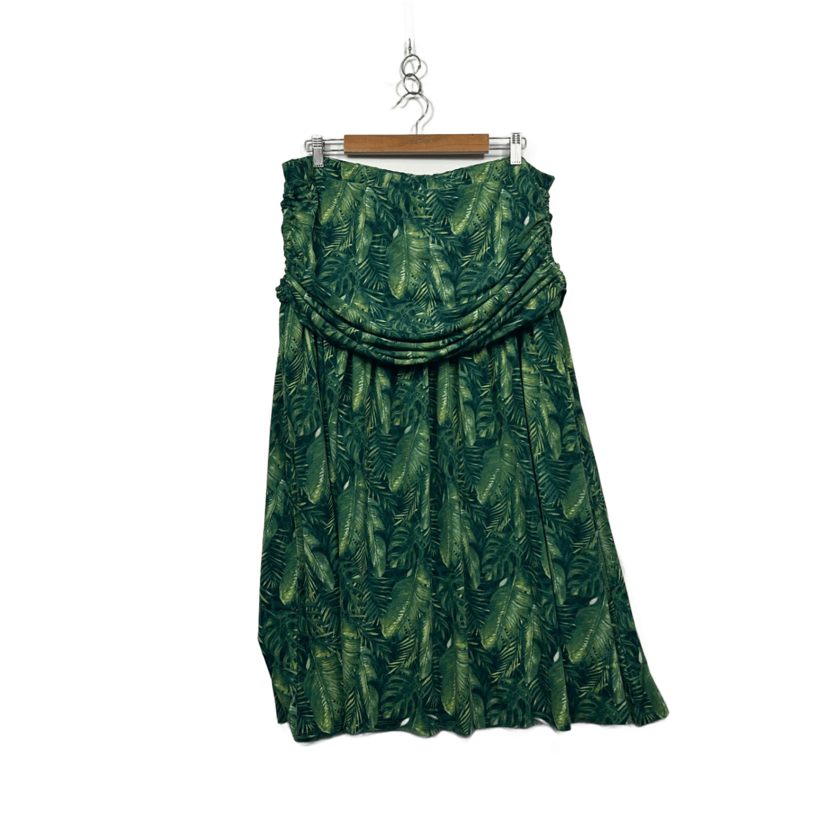 Capture Womens Green Long Leaf Print Stretch Maxi Skirt Size 18