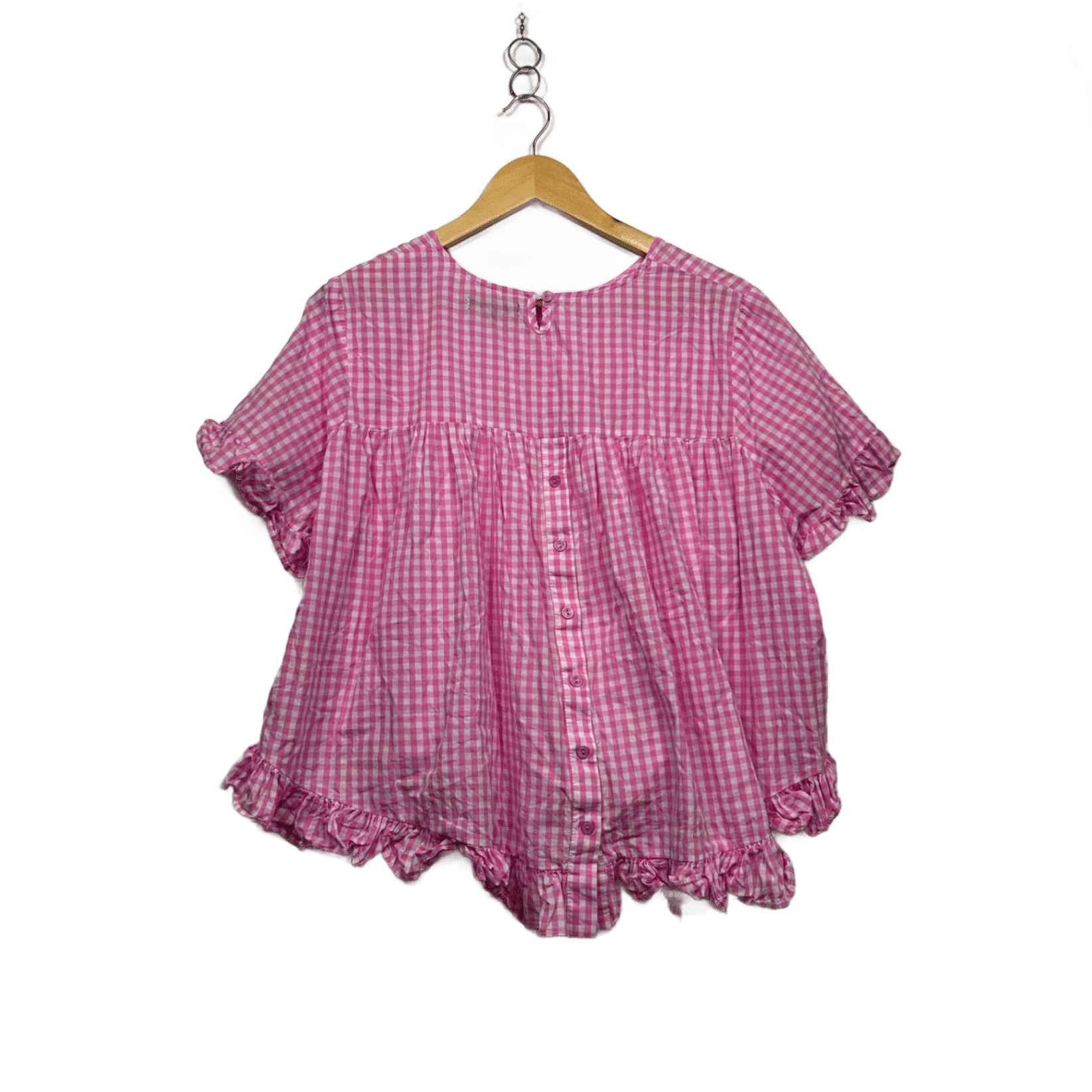 Caroline Morgan Pink Cotton Short Sleeve Gingham Check Top Size 12