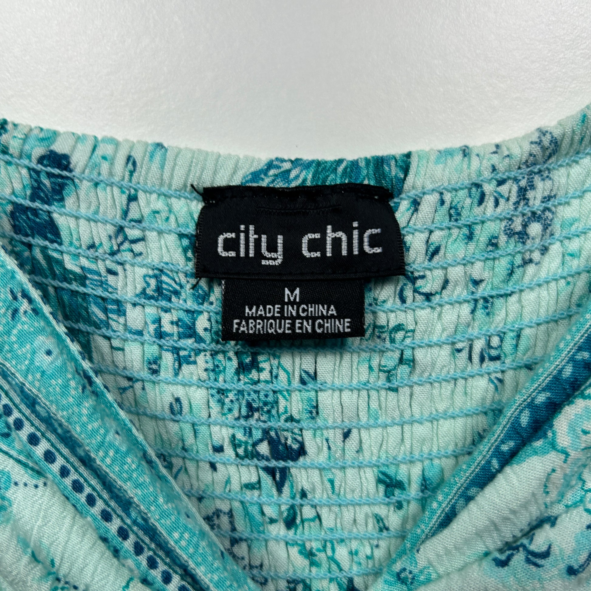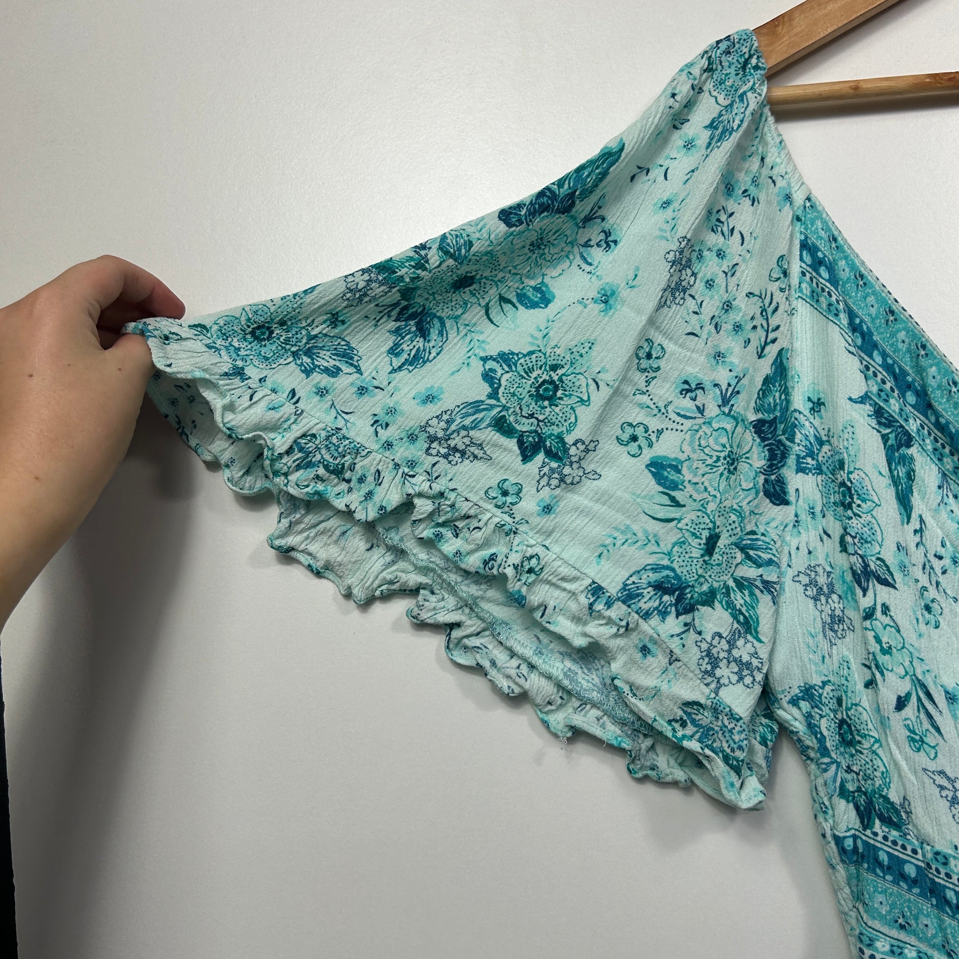 City Chic Aqua Floral Peasant Boho Top - Size 18/M