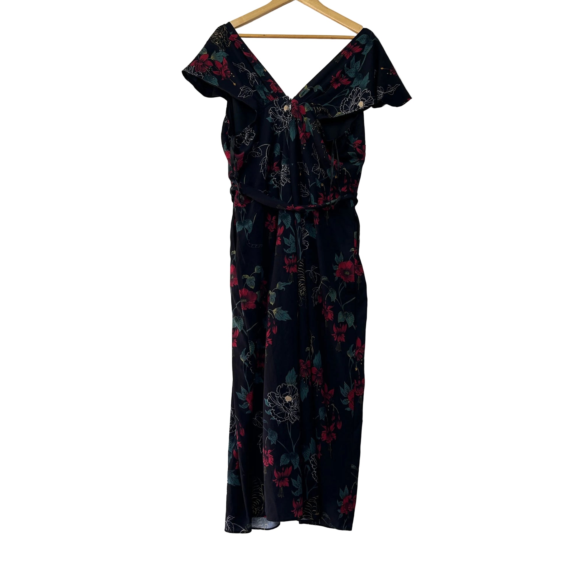 City Chic Black Floral Print Jumpsuit - Size 16
