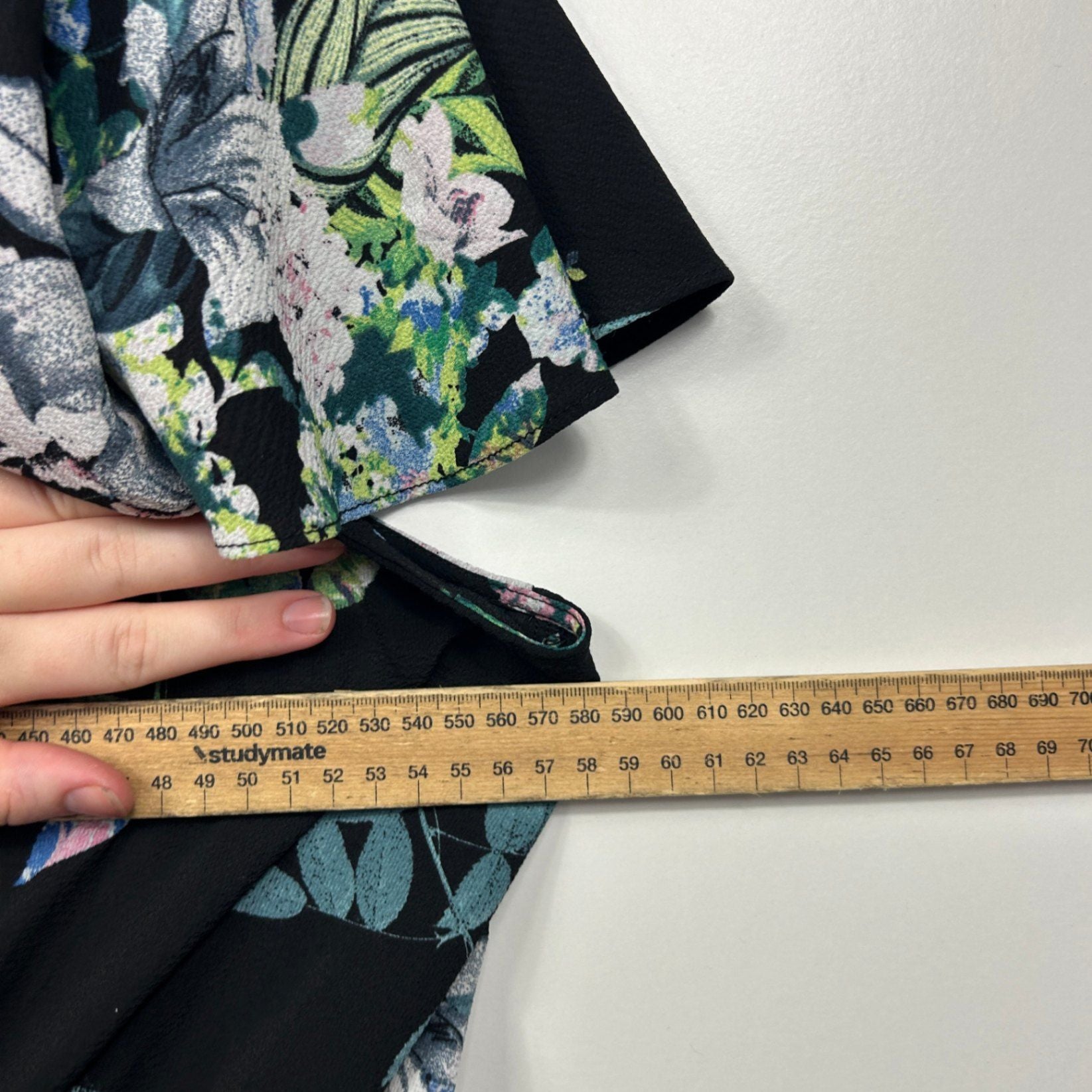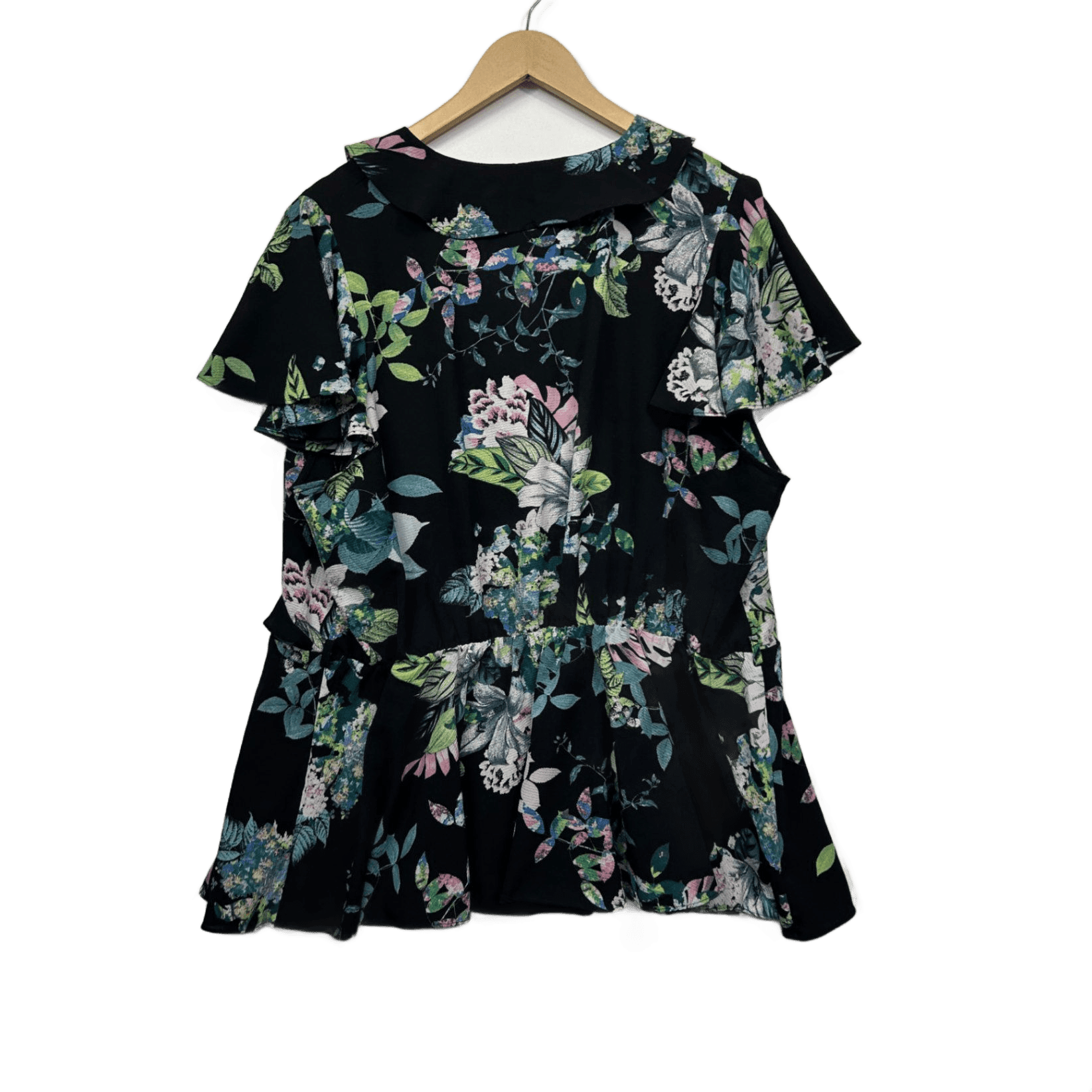City Chic Black Floral Short Sleeve Faux Wrap Blouse Size XL 22 Plus