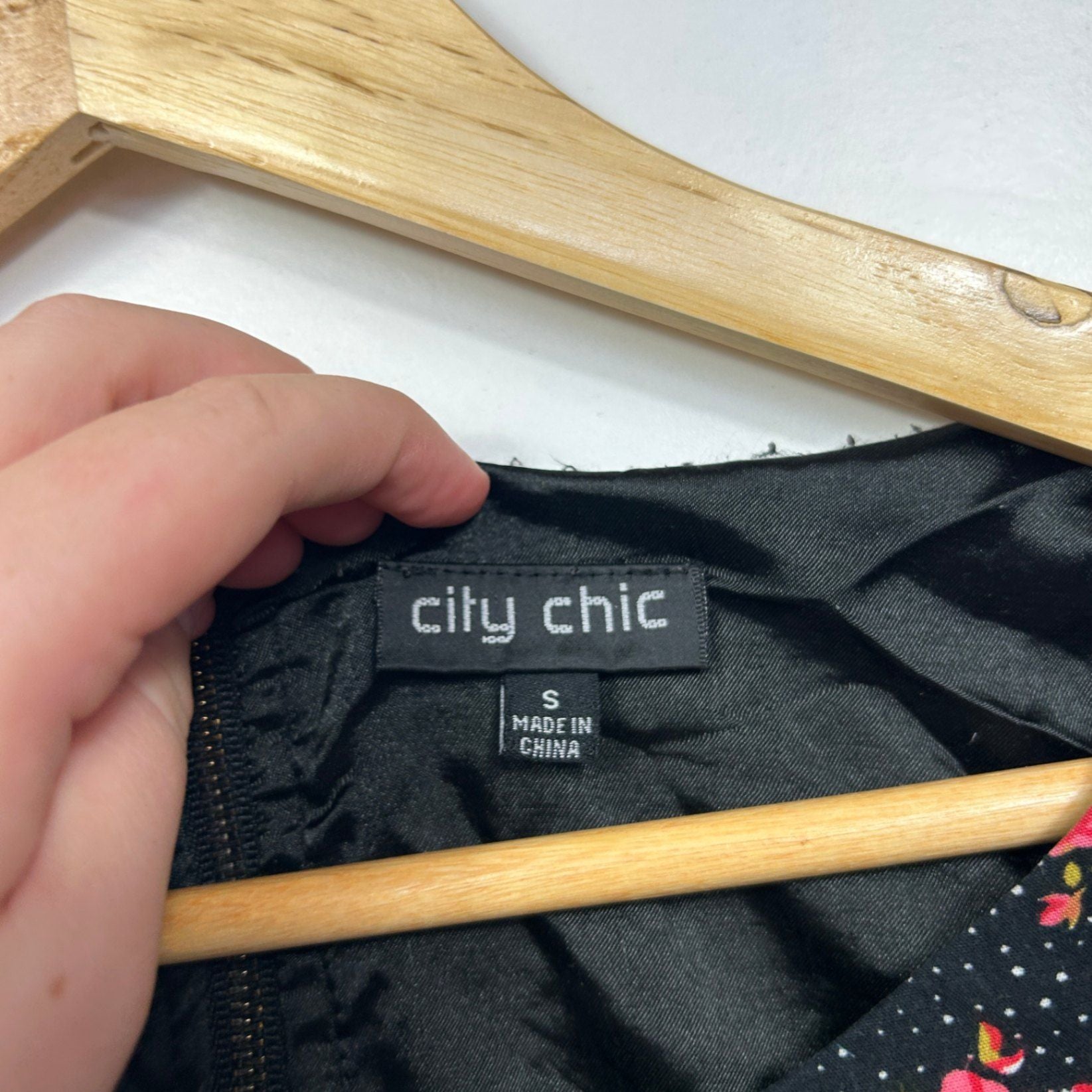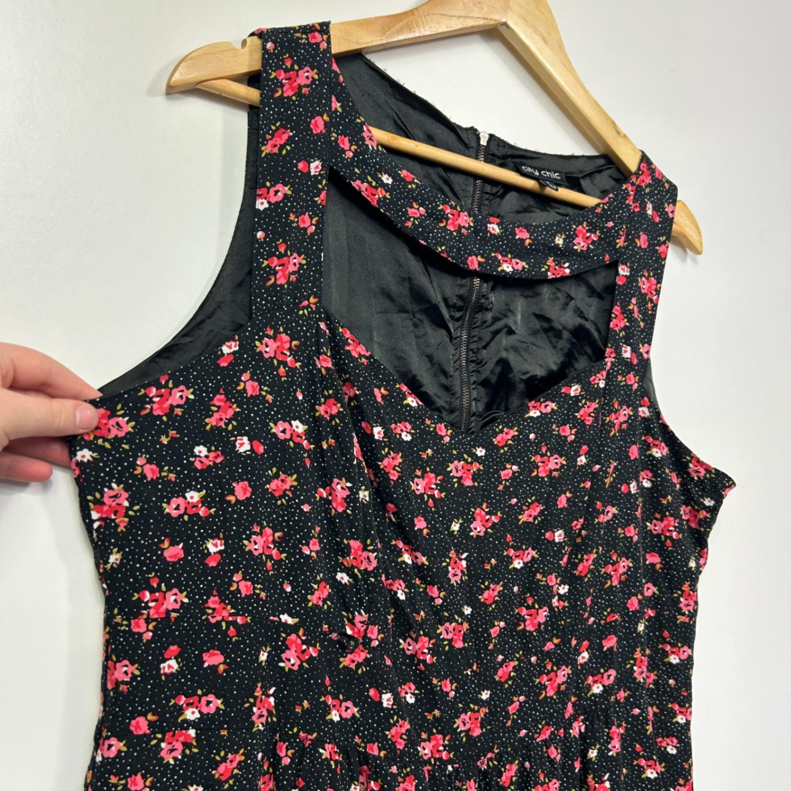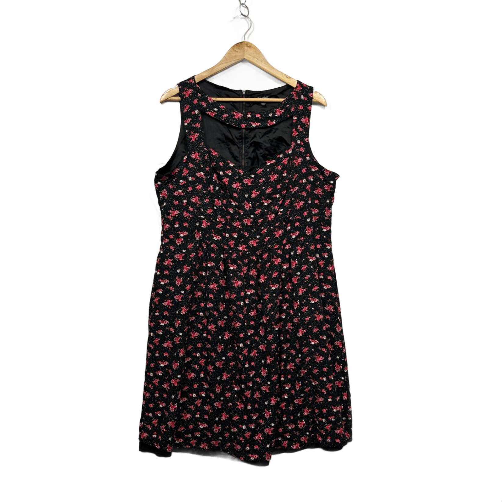 City Chic Black Pink Floral Sleeveless Fit & Flare Size 16 Small Plus