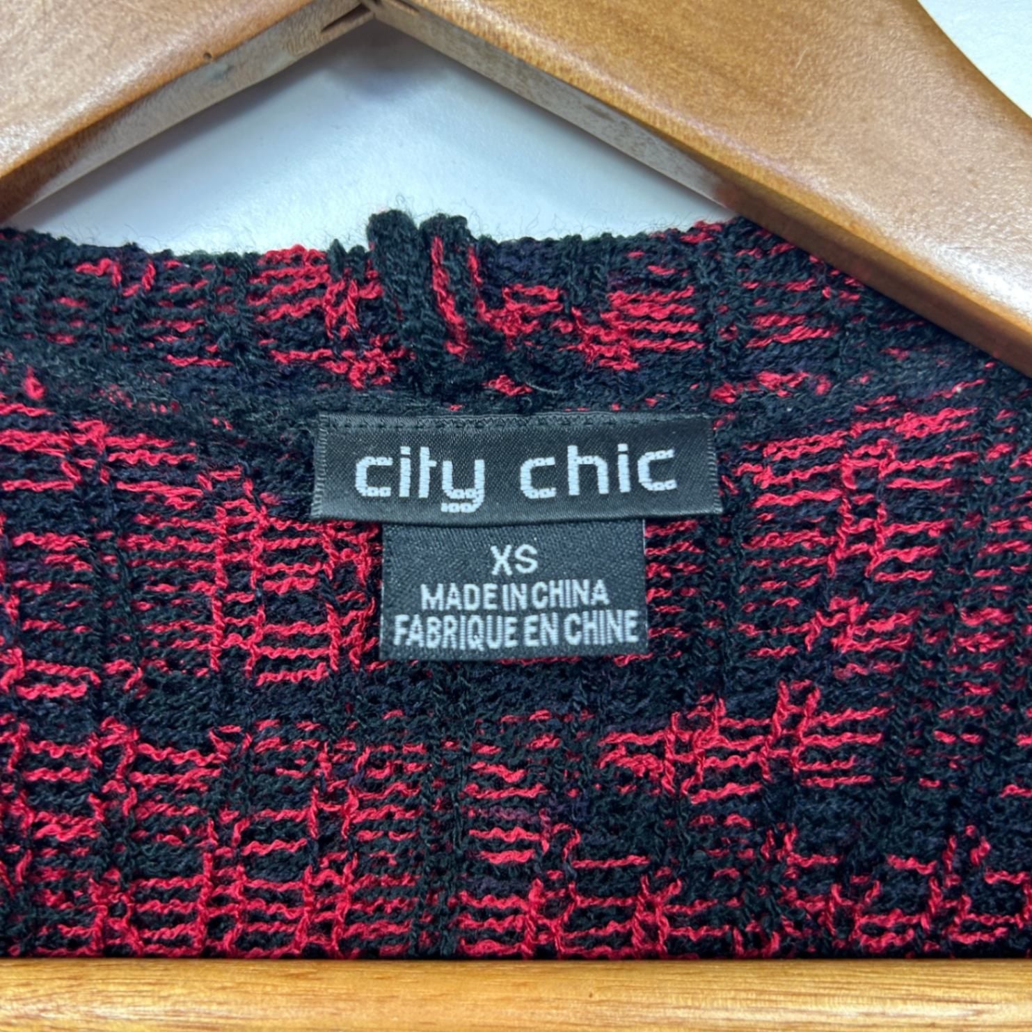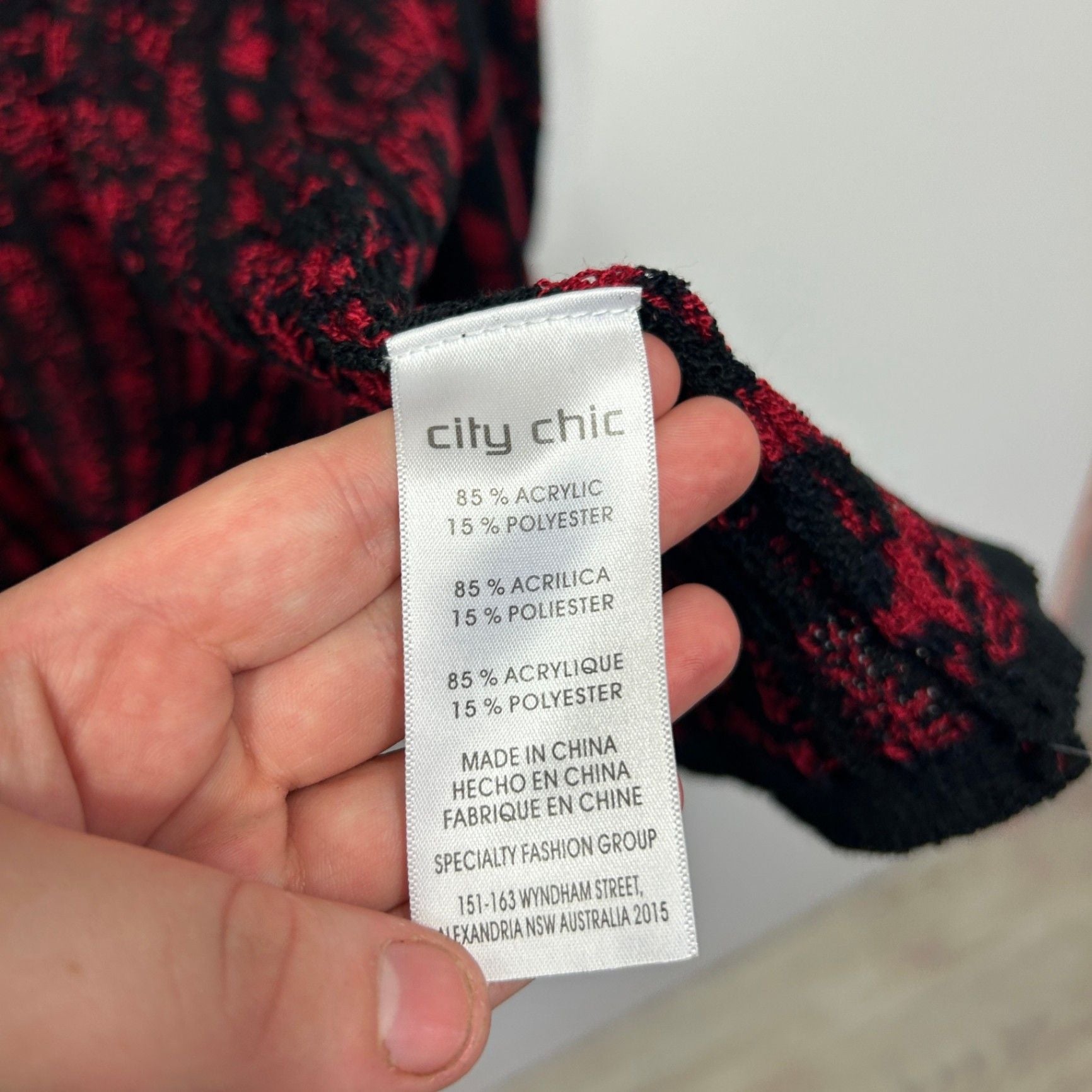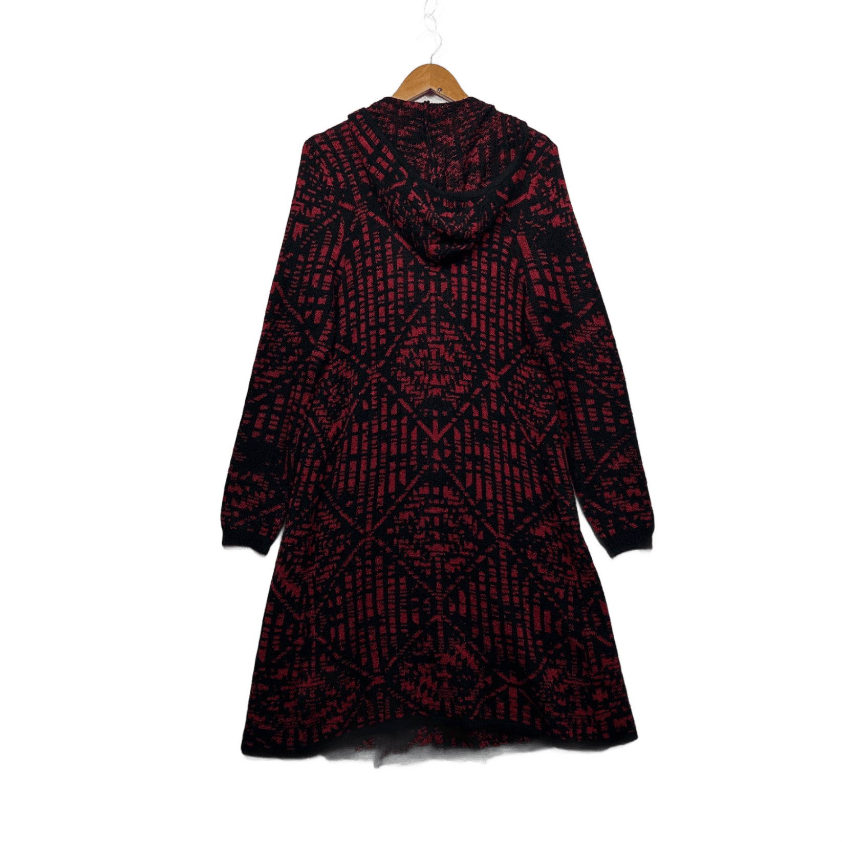 City Chic Black Red Hooded Longline Cardigan Jumper Size 14 Plus XS Aztec Print