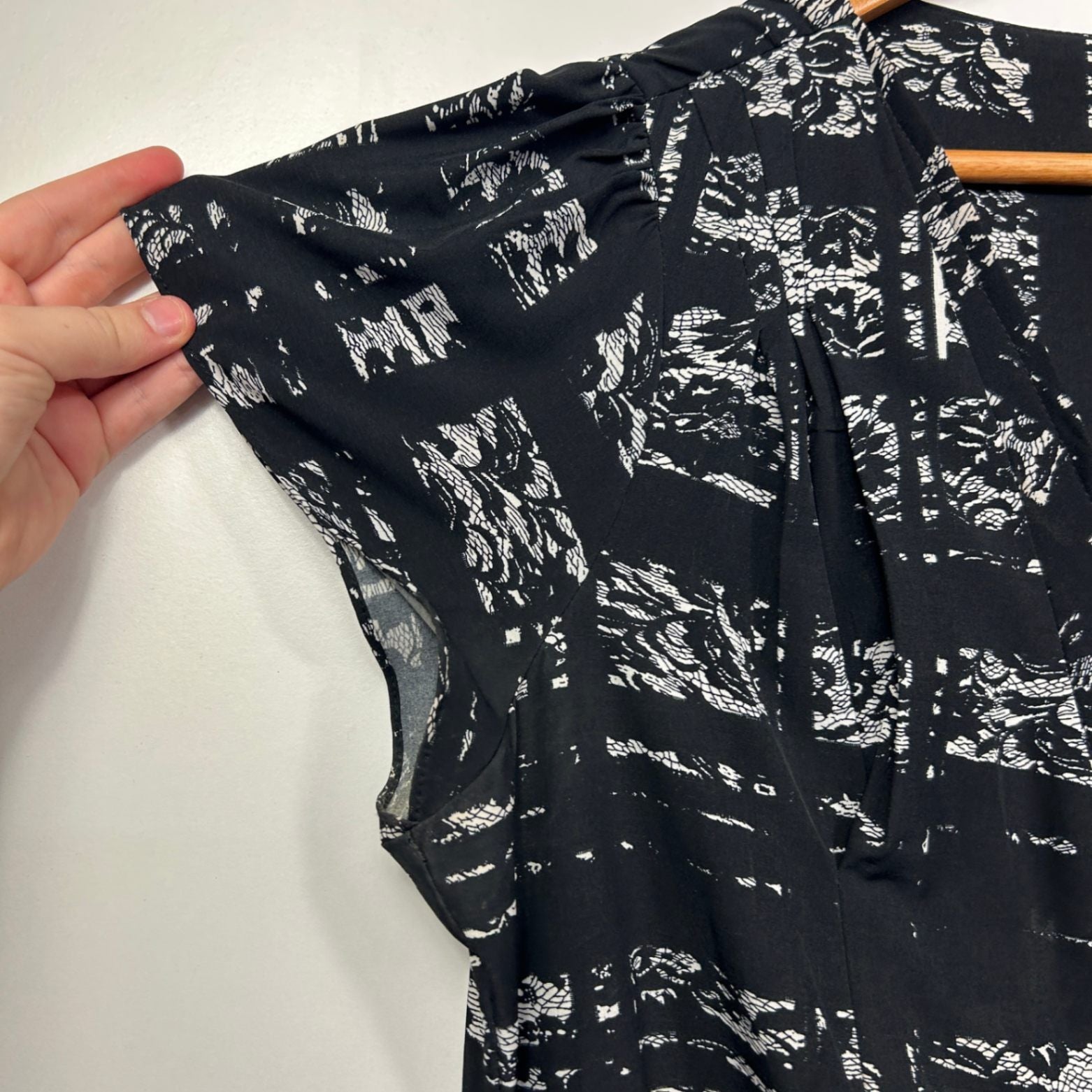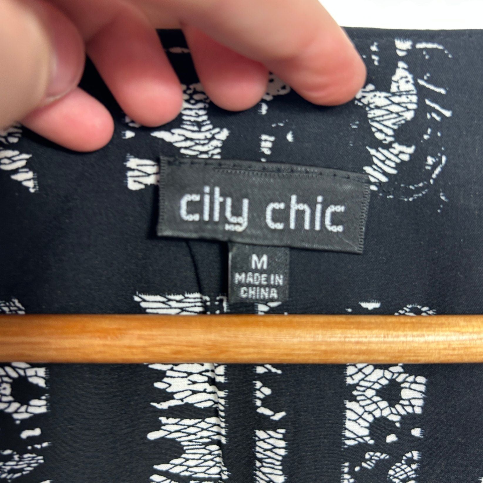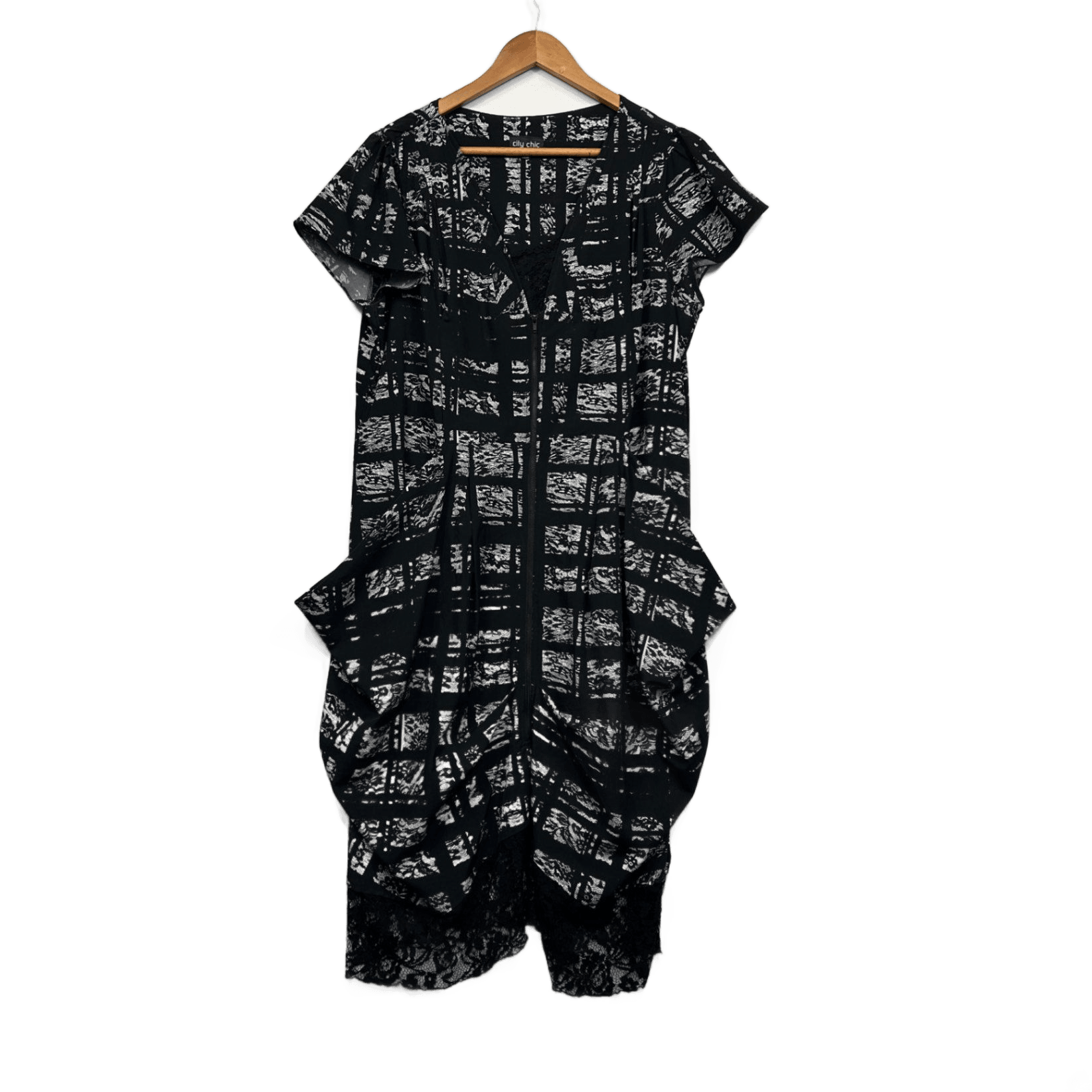 City Chic Black Short Sleeve Midi Lace Trim Size 18 Medium Plus Full Zip Up