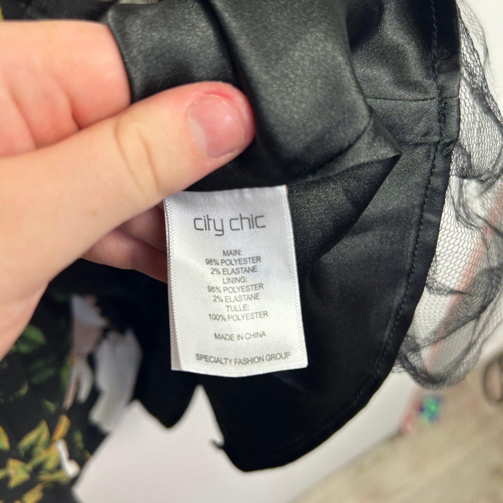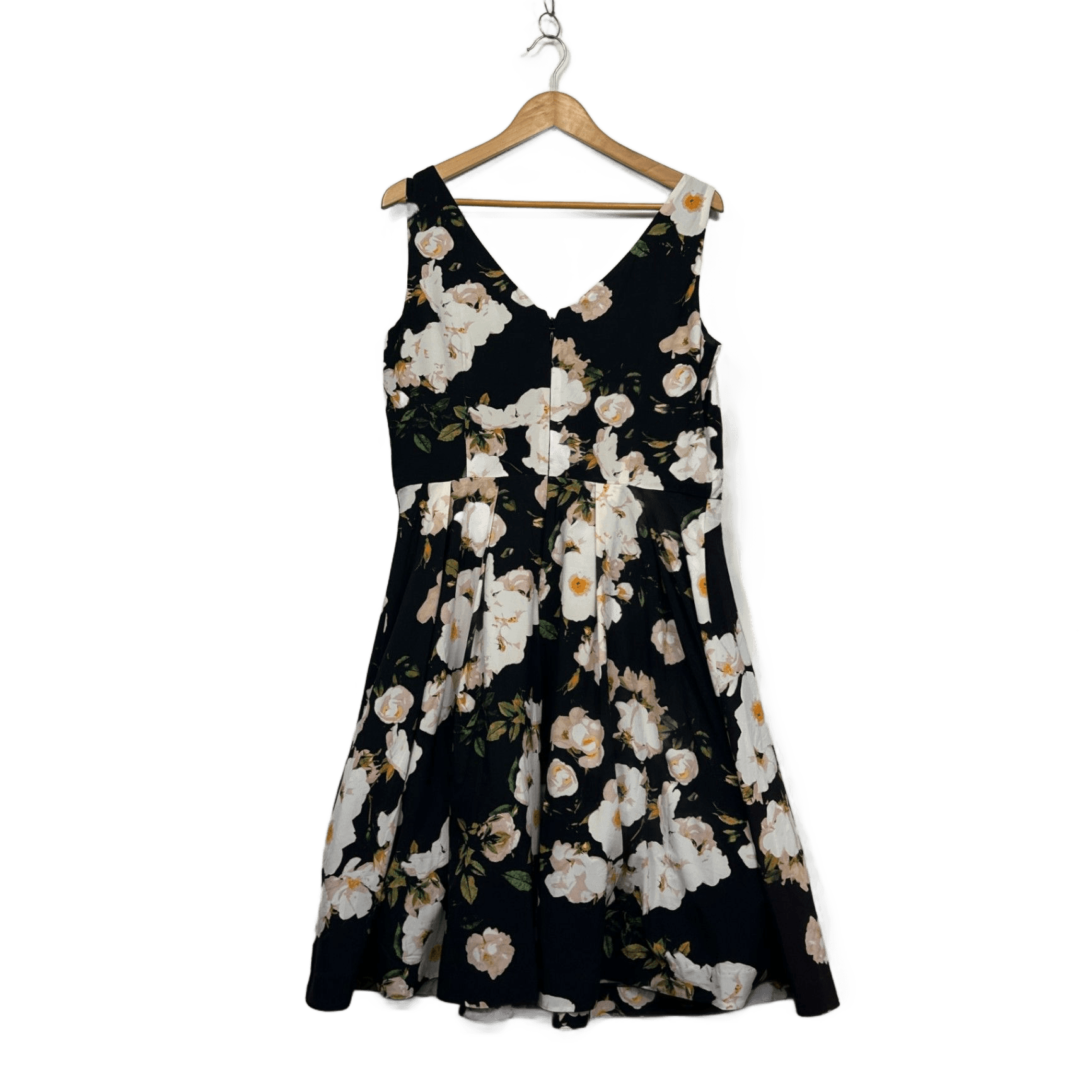 City Chic Black White Floral Sleeveless Fit & Flare Dress Size 14 Plus XS