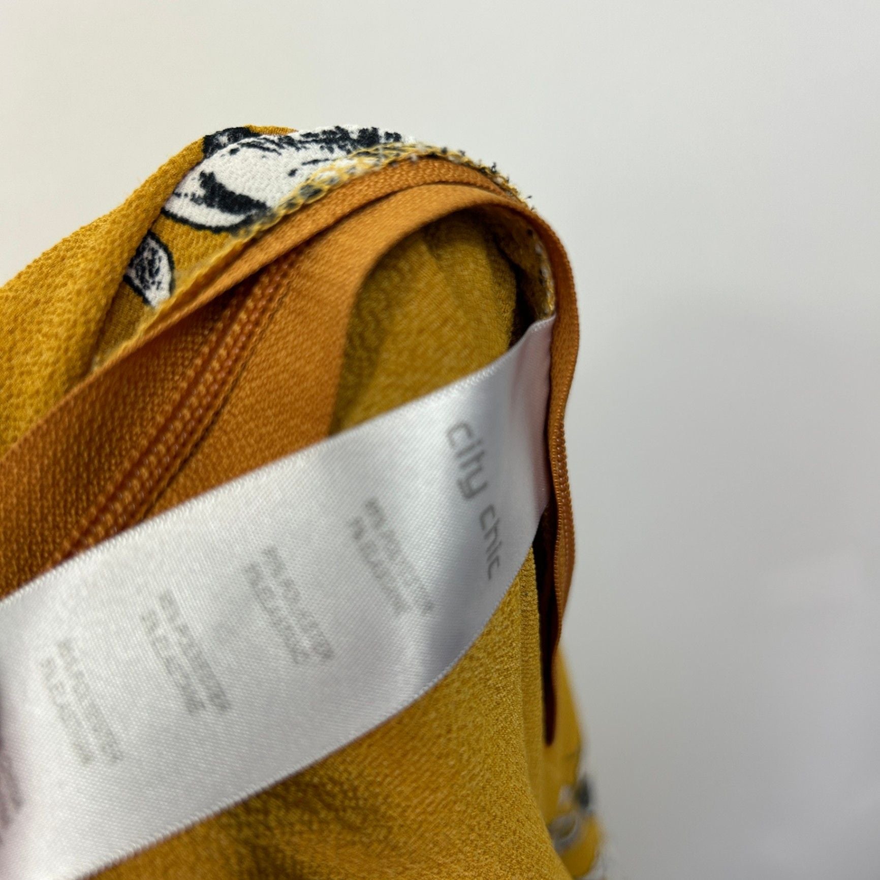 City Chic Mustard Yellow Wide Leg Palazzo Trousers Pants Side Zip Size 16