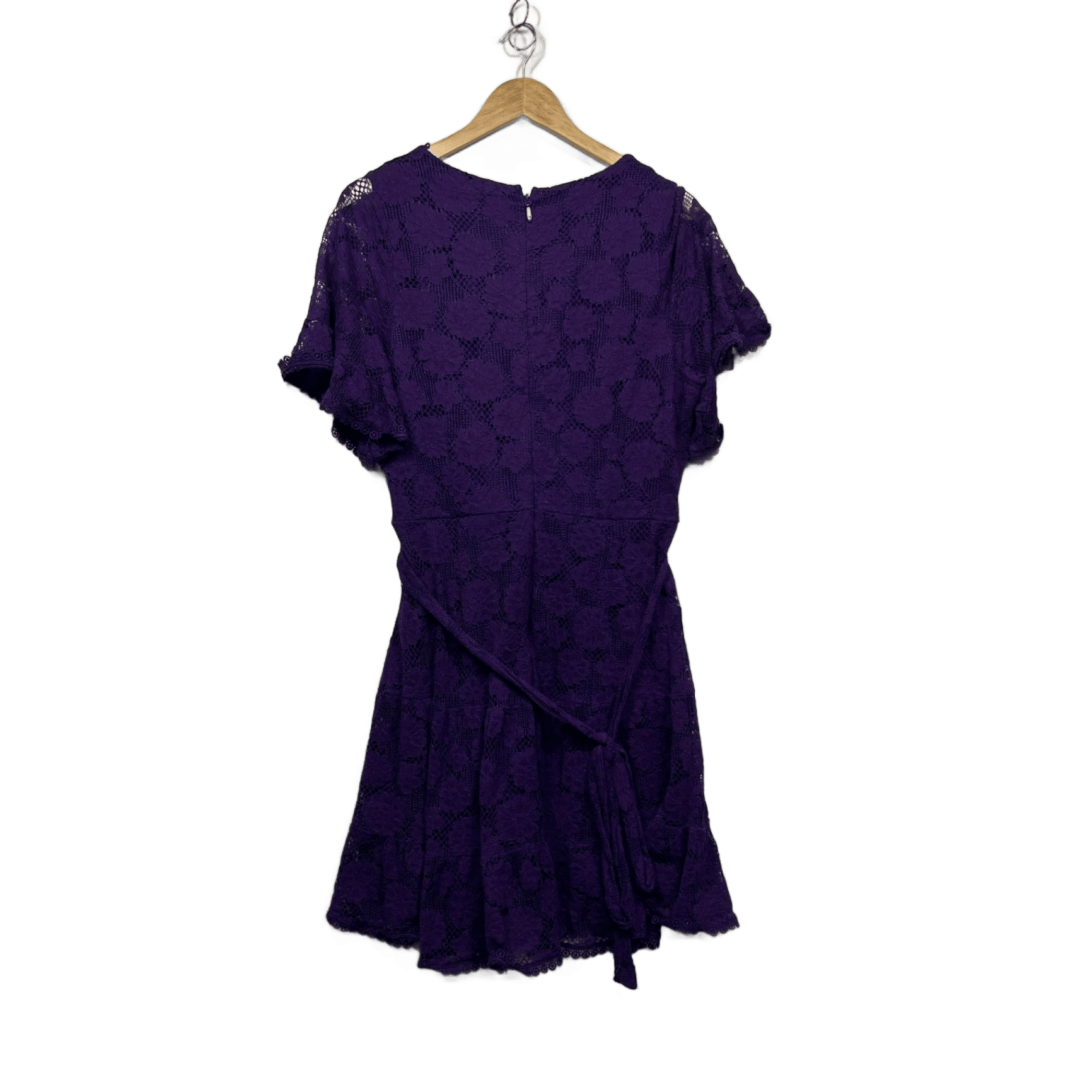 City Chic Purple Lace Overlay Short Sleeve Fit & Flare Cocktail Dress Size 16