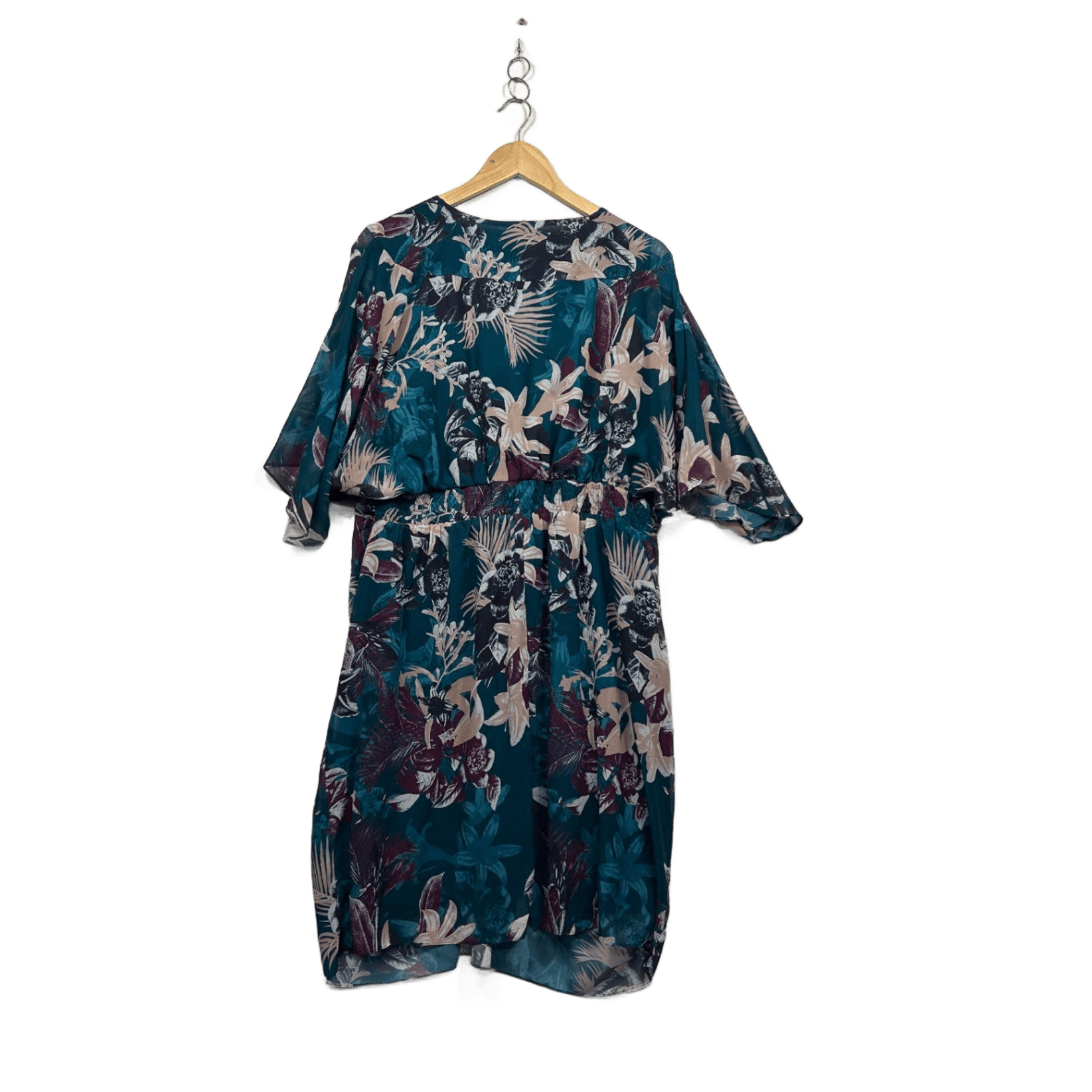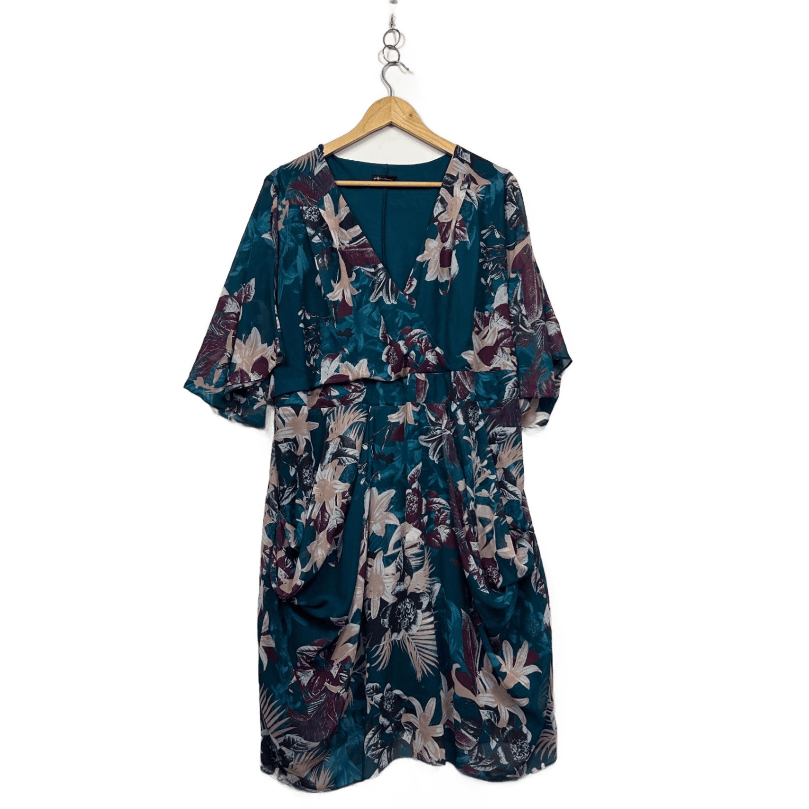 City Chic Teal Short Sleeve Floral Fit & Flare Cocktail Dress Size 18