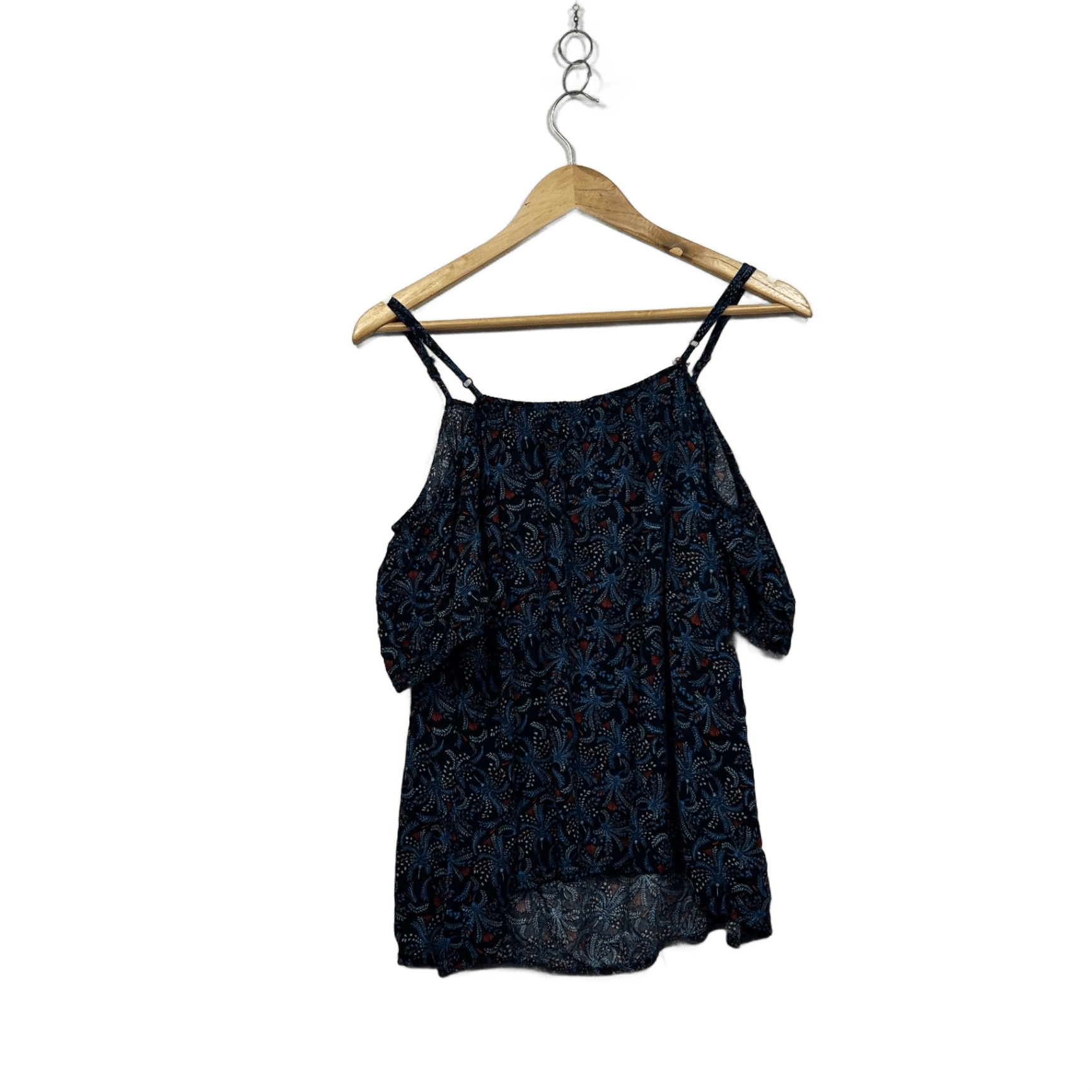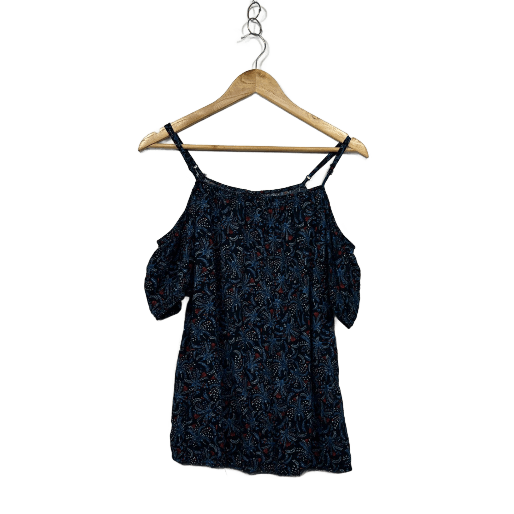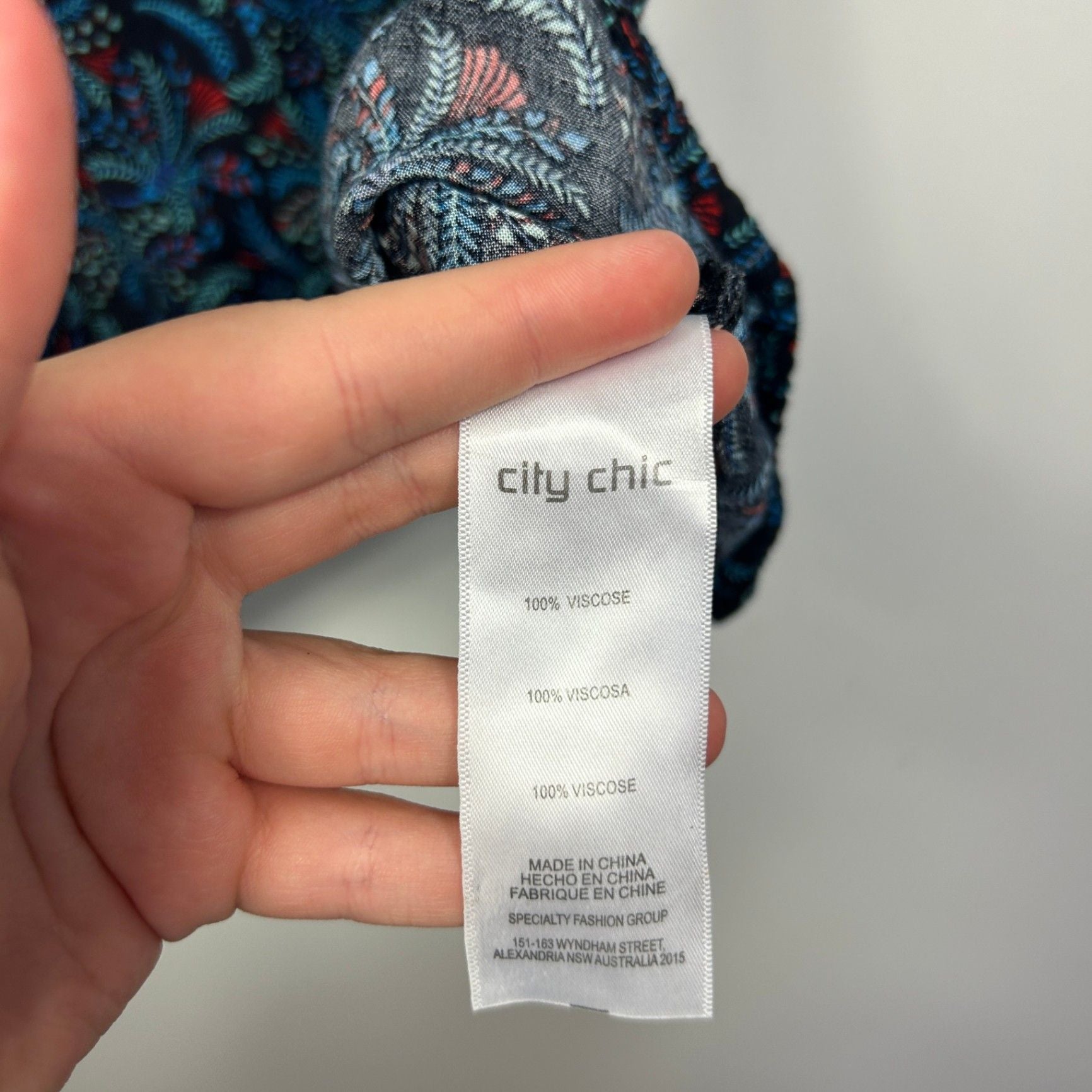 City Chic Womens Black Blue Floral Round Neck Cold Shoulder Top Blouse Size 14