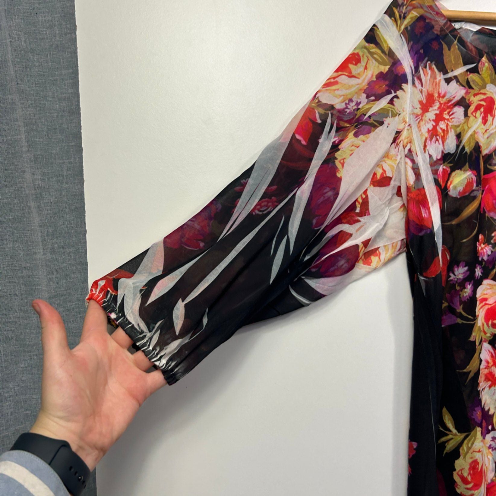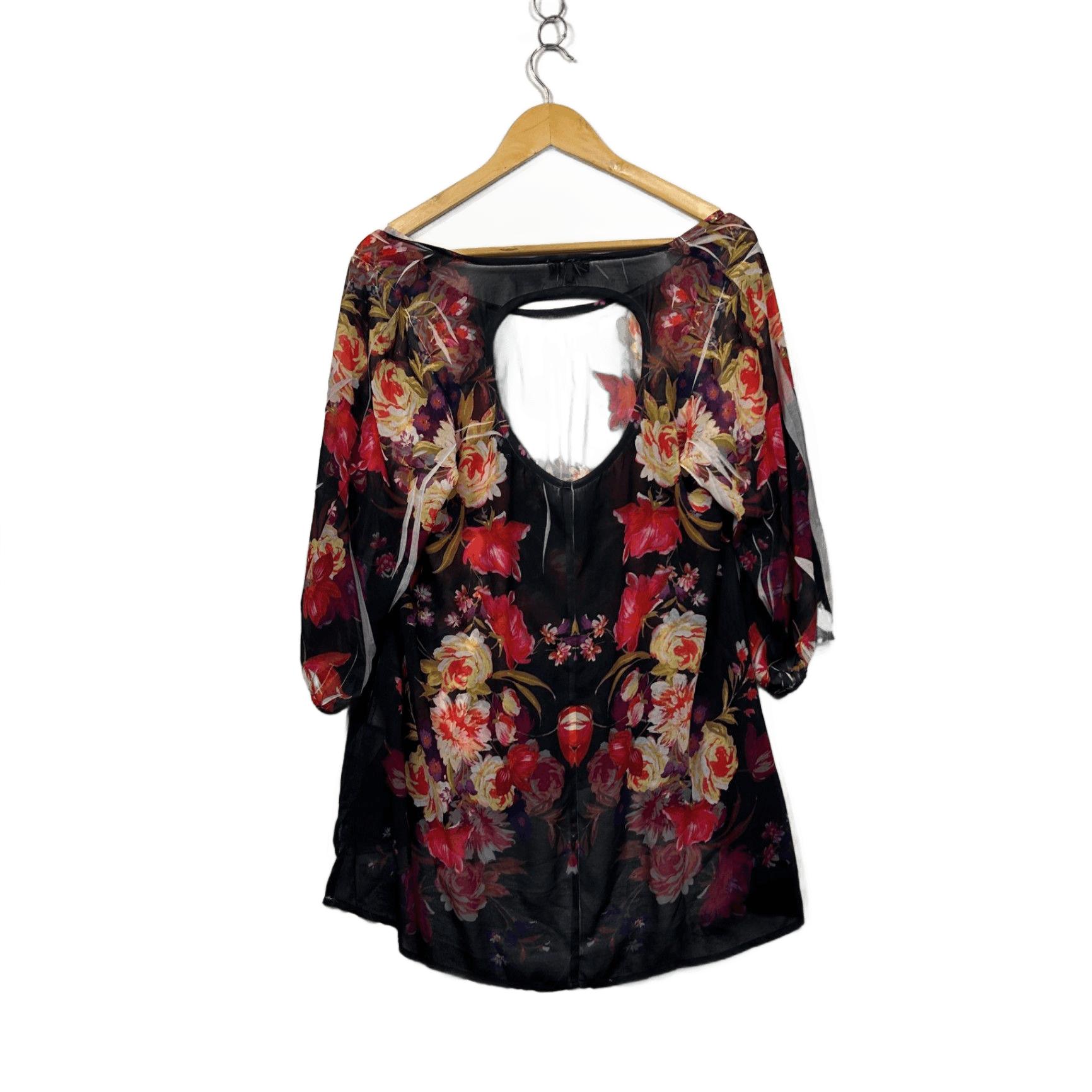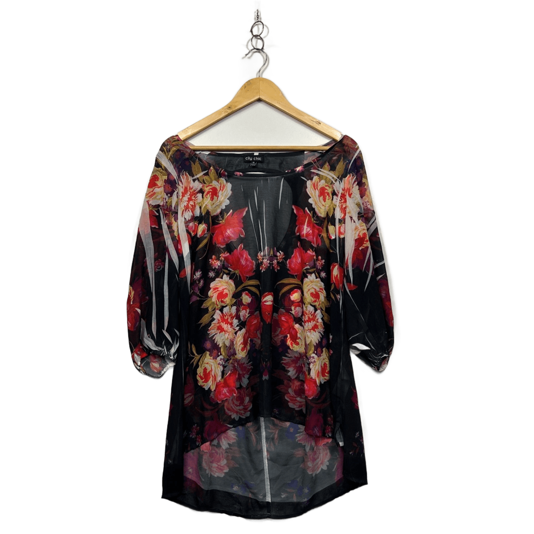 City Chic Womens Black Sheer 3/4 Sleeve Top Blouse Size 14