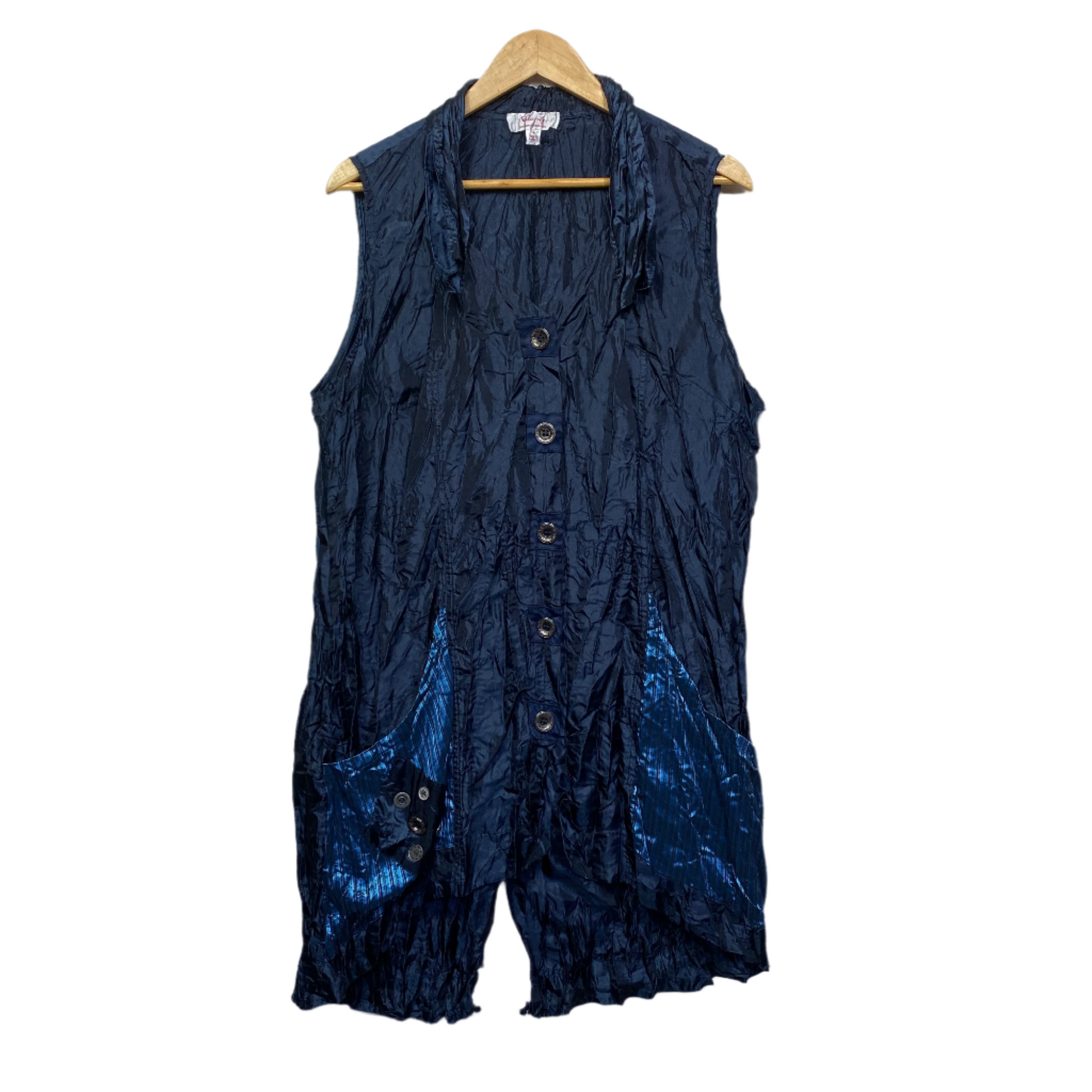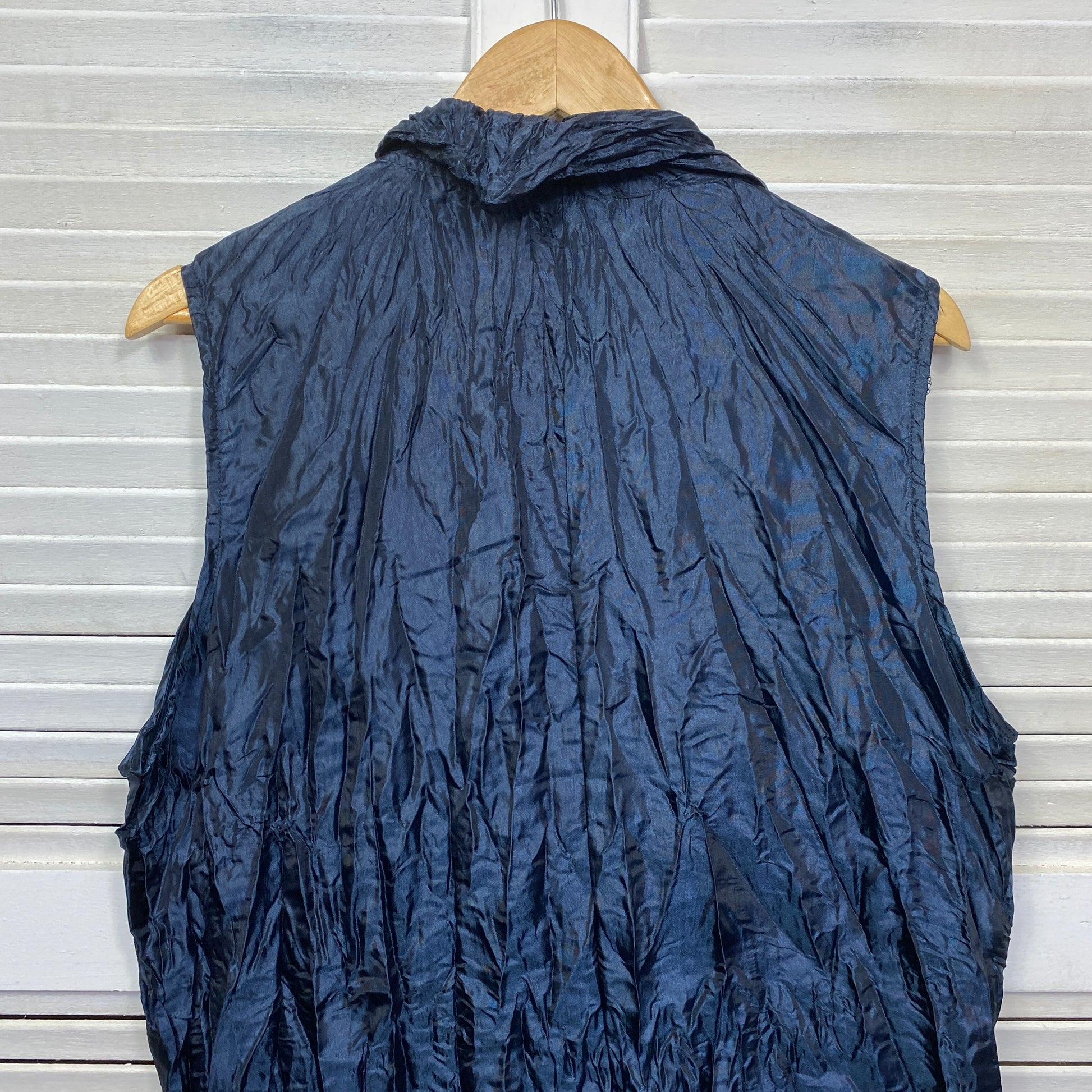 Clarity Top Size XL 16 Sleeveless Navy Blue Crinkle