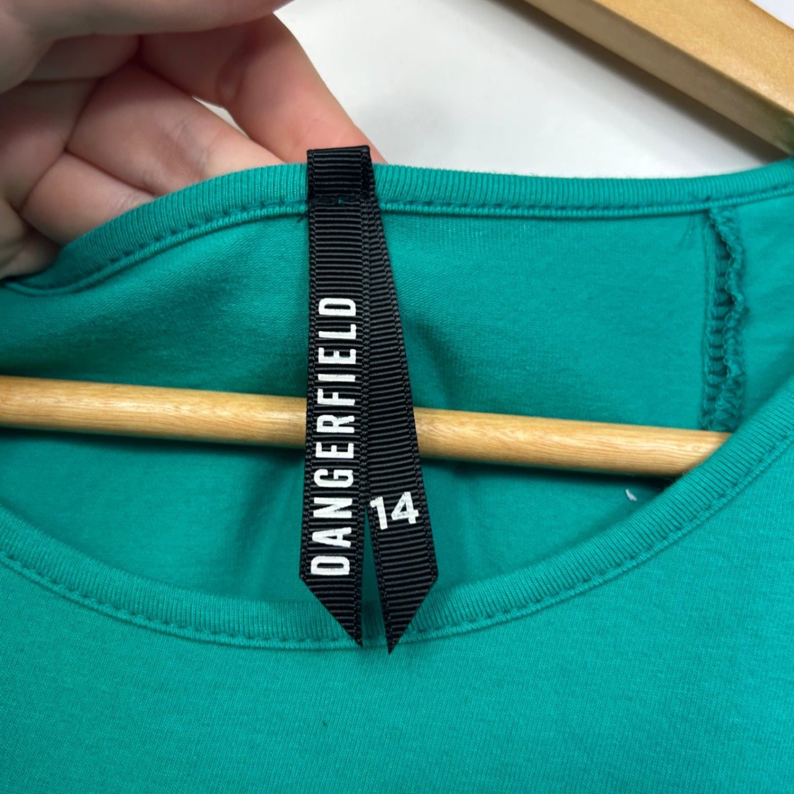 Dangerfield Green Short Sleeve Cropped Back Layered T-Shirt Size 14