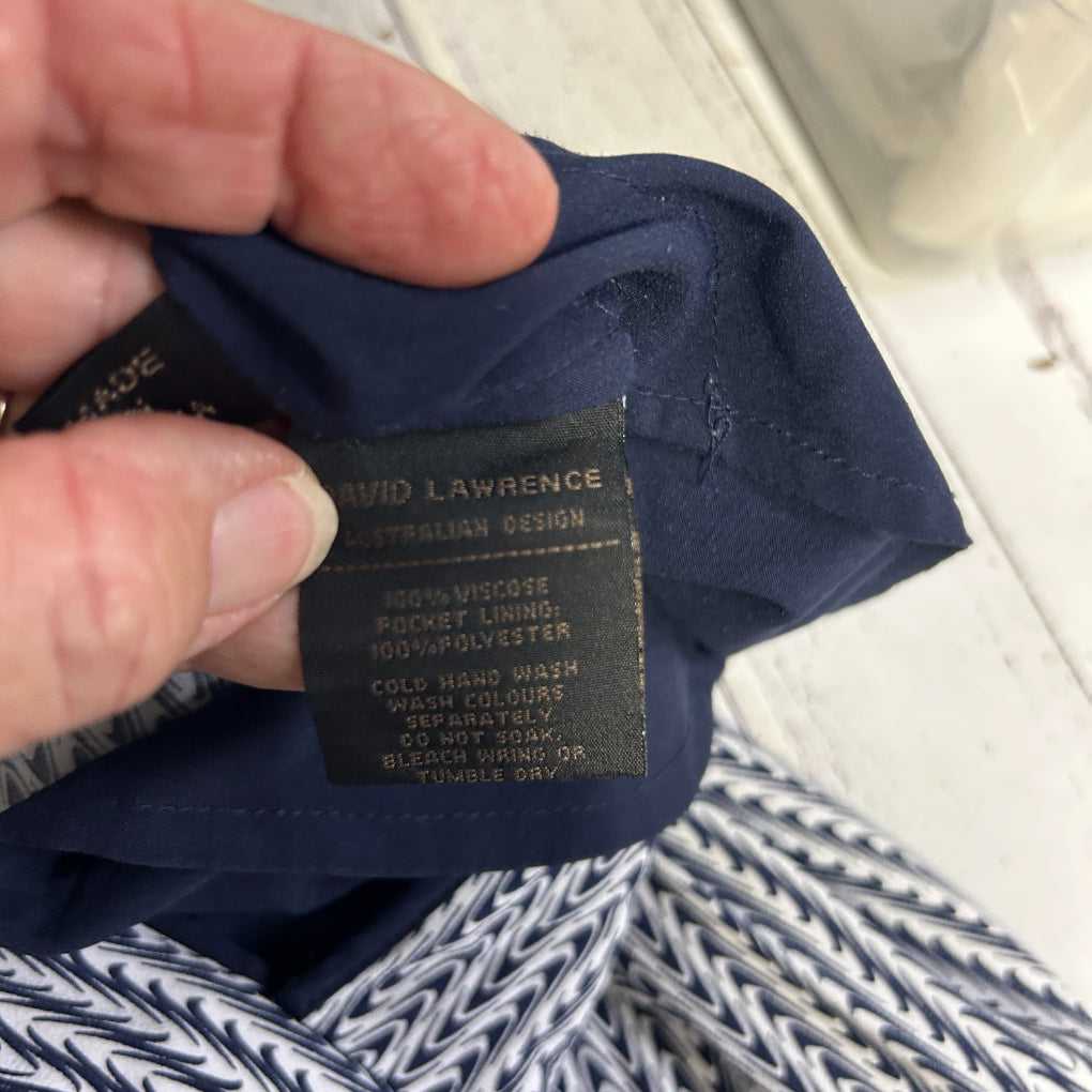 David Lawrence Navy & White Geometric Print Pants - Size 16