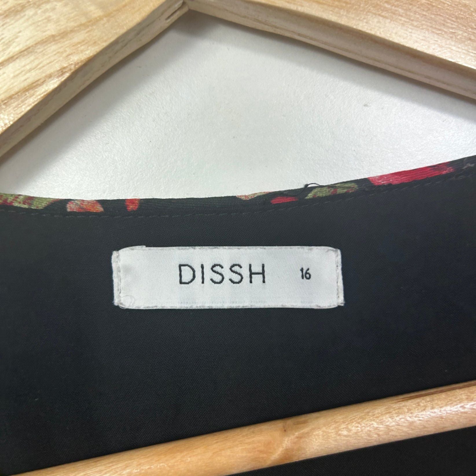 DISSH Women's Black Viscose Blend Short Sleeve Wrap Dress Size 16