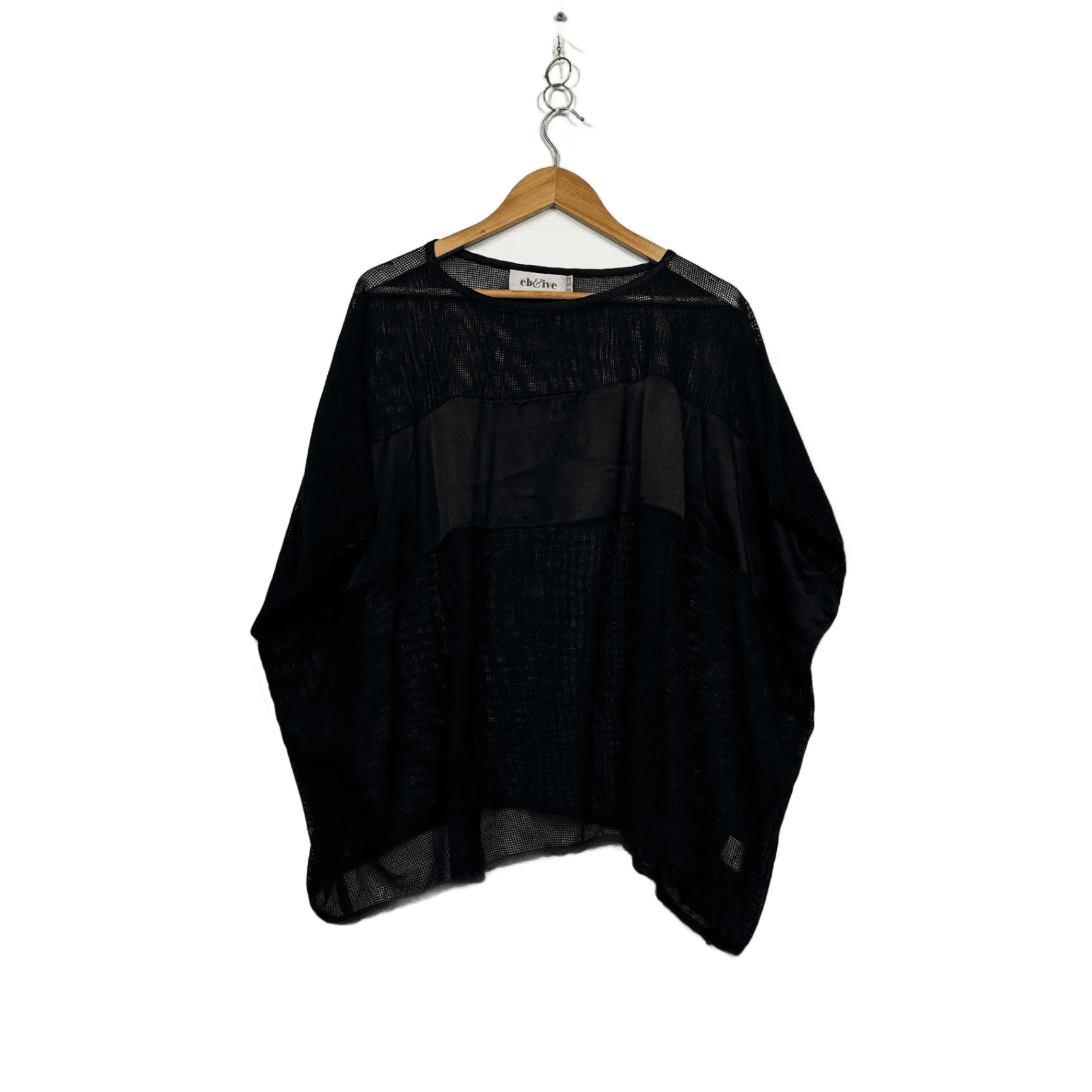 eb&ive Black Short Sleeve Sheer Mesh Batwing Top Blouse One Size 14 16