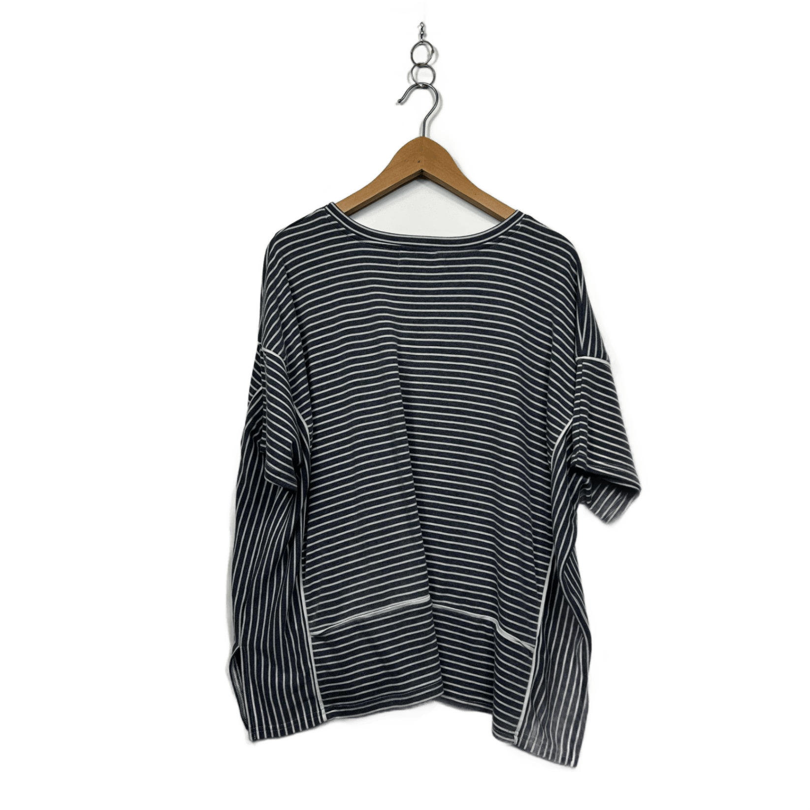 Eb&ive Navy White Short Sleeve Striped Kaftan Tunic Top One Size
