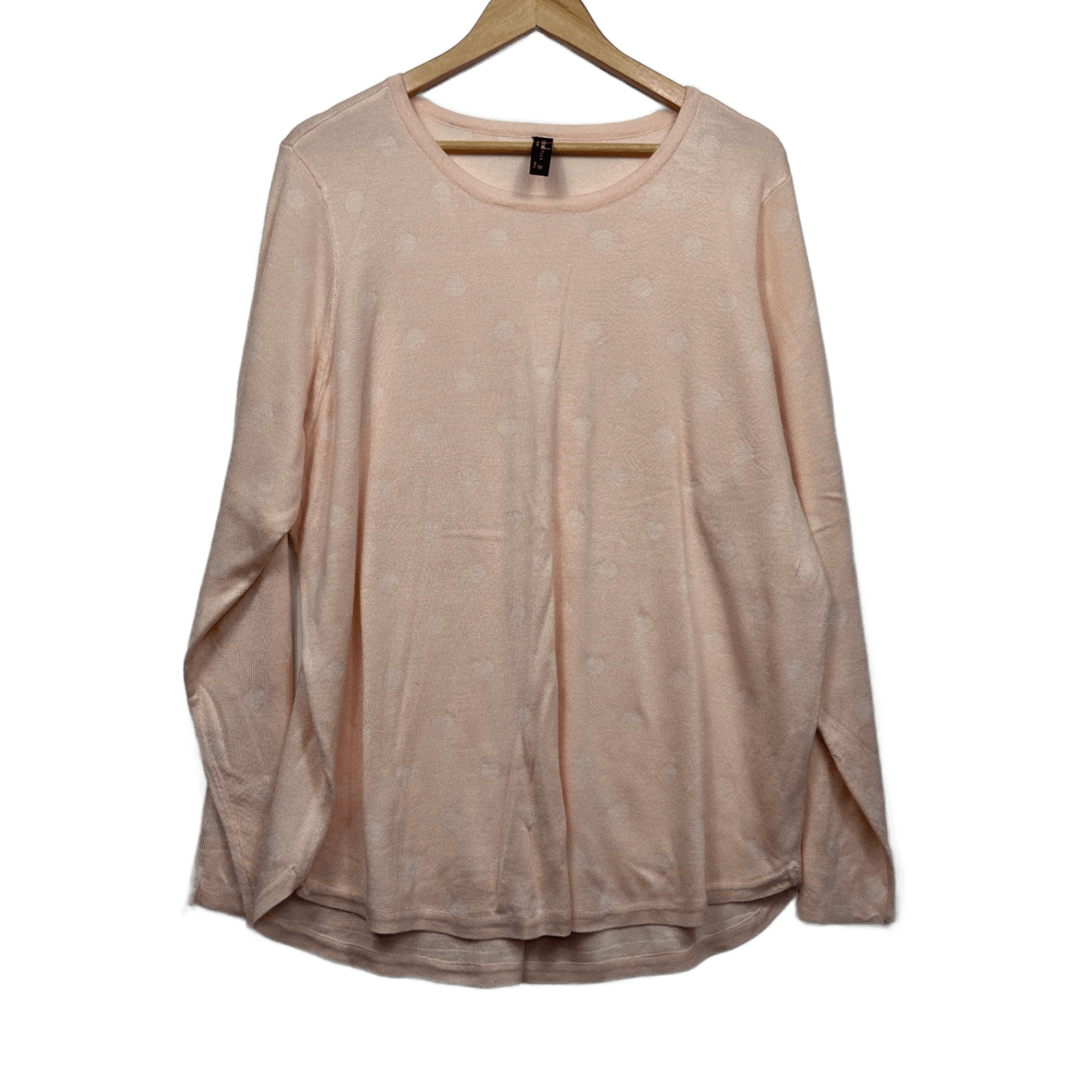 Edited Top Jumper Size 20 Peach Long Sleeved Lightweight Knit Polka Dots