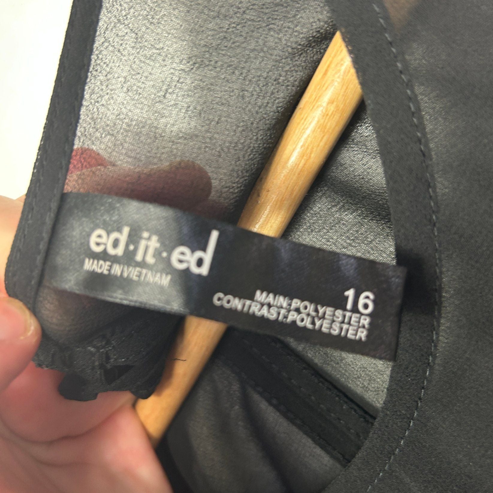 edited Women's Black Sleeveless Hi Low Sheer Overlay Slip Dress Size 16
