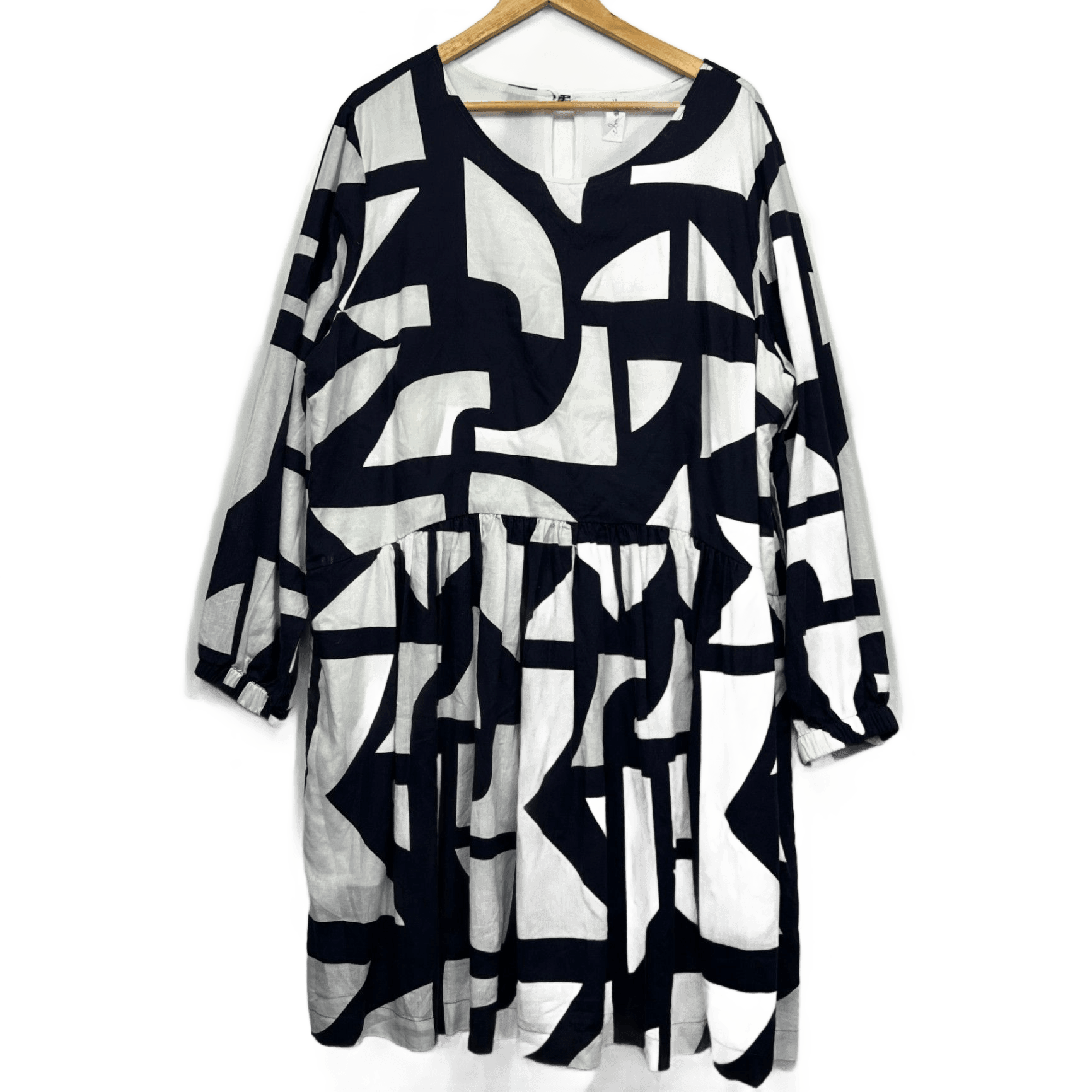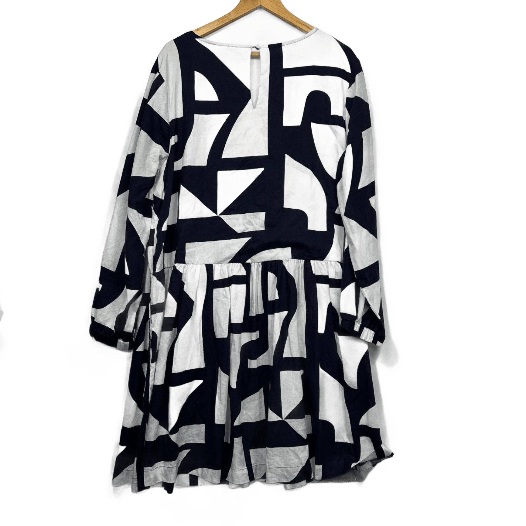 Elm Black White Long Sleeve Smock Cotton Dress Size 18 Pockets Lined