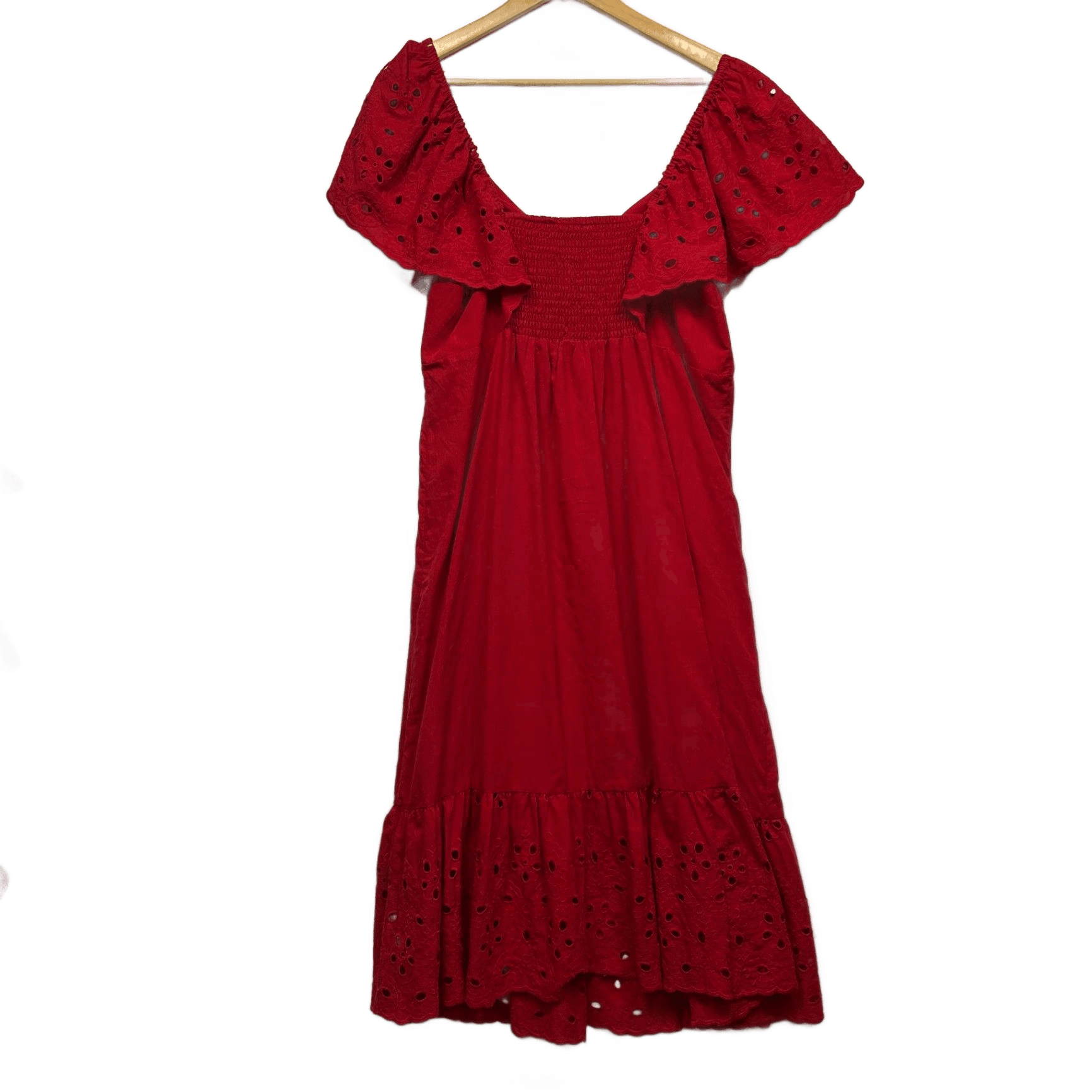 Emerge Short Sleeve Red Broderie Maxi Dress Size 12