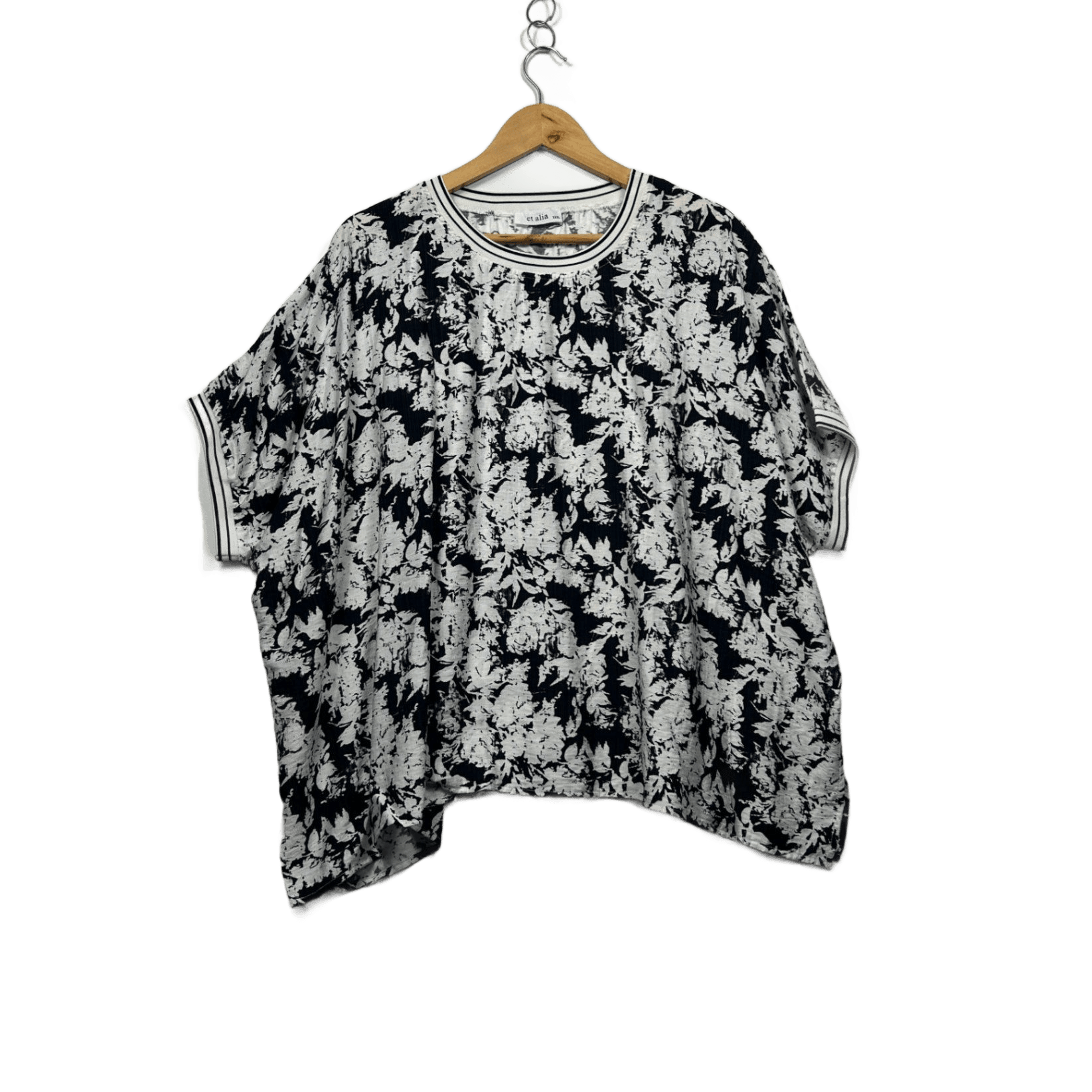 Et Alia Black White Short Sleeve Boxy Blouse Size 20 XXXL New Zealand Designer