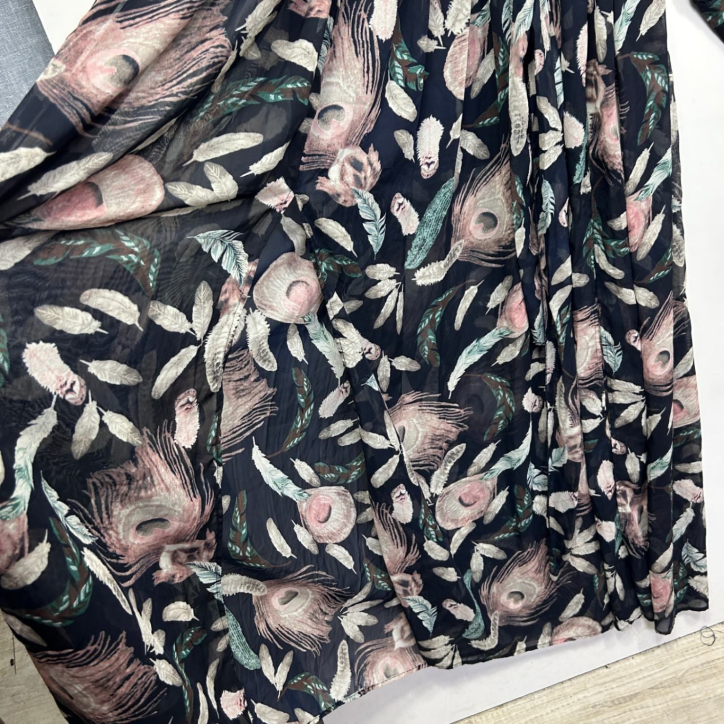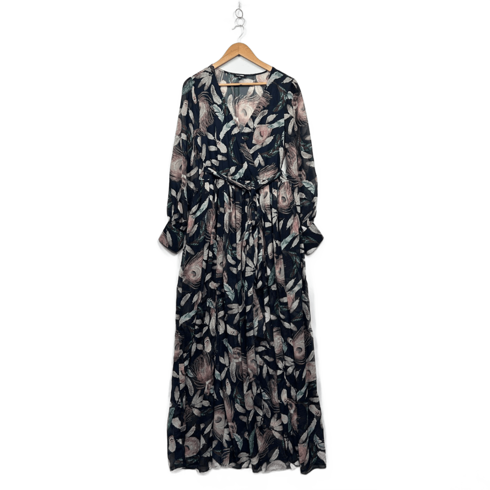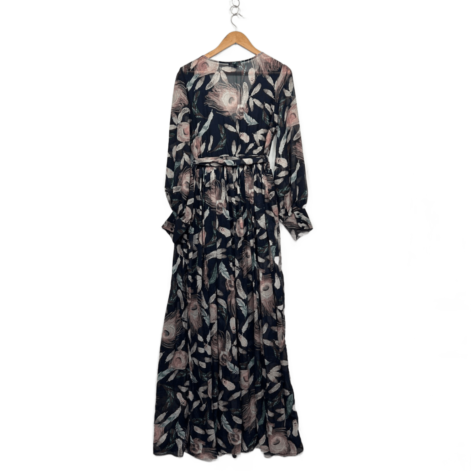 Fashion Nova Multicoloured Floral Long Sleeve Feathers Maxi Dress