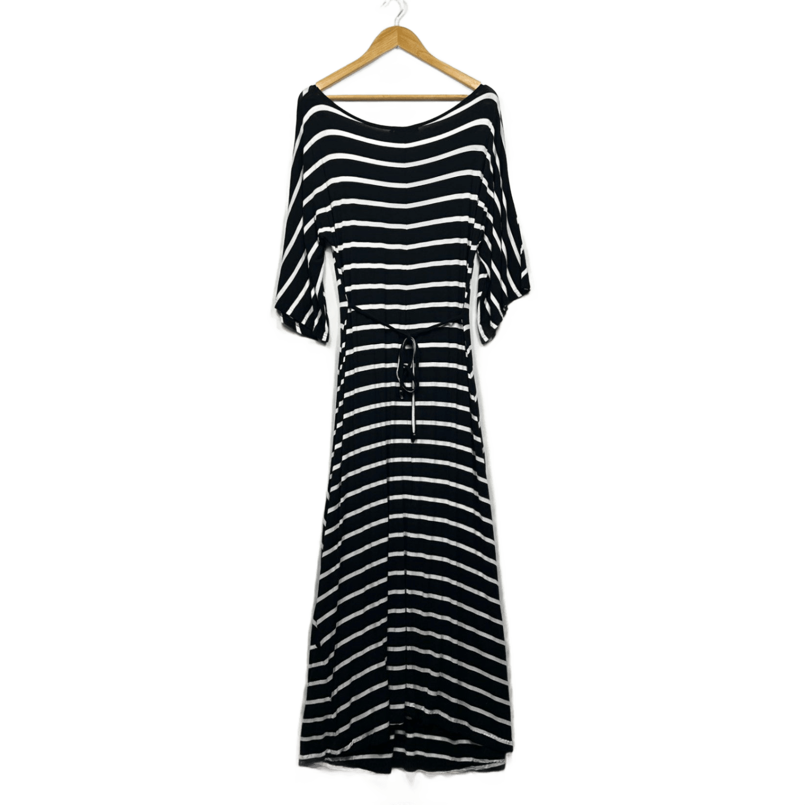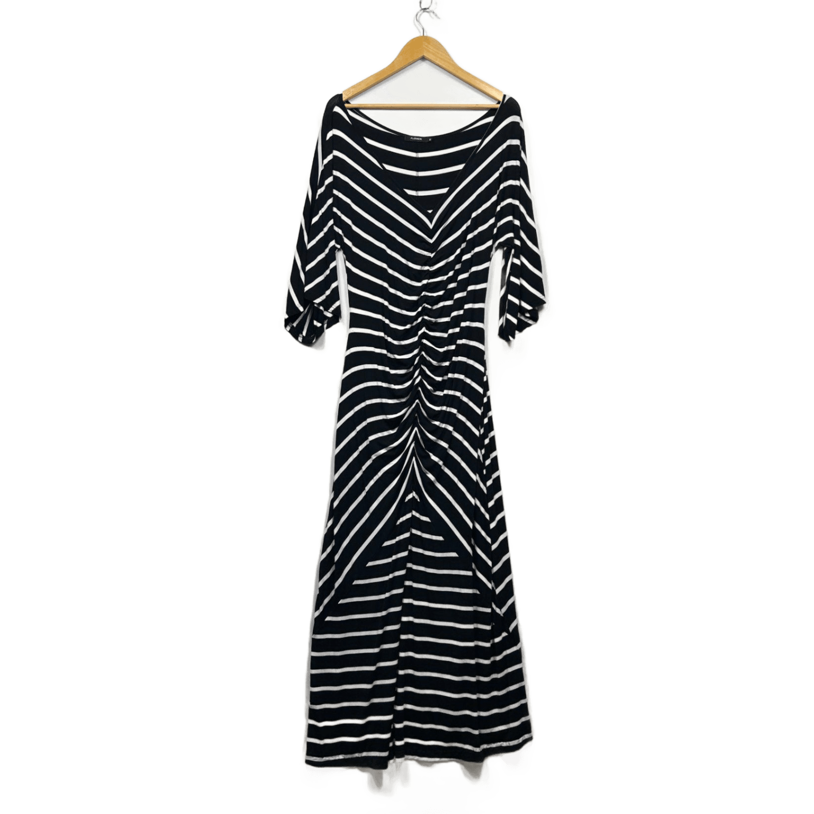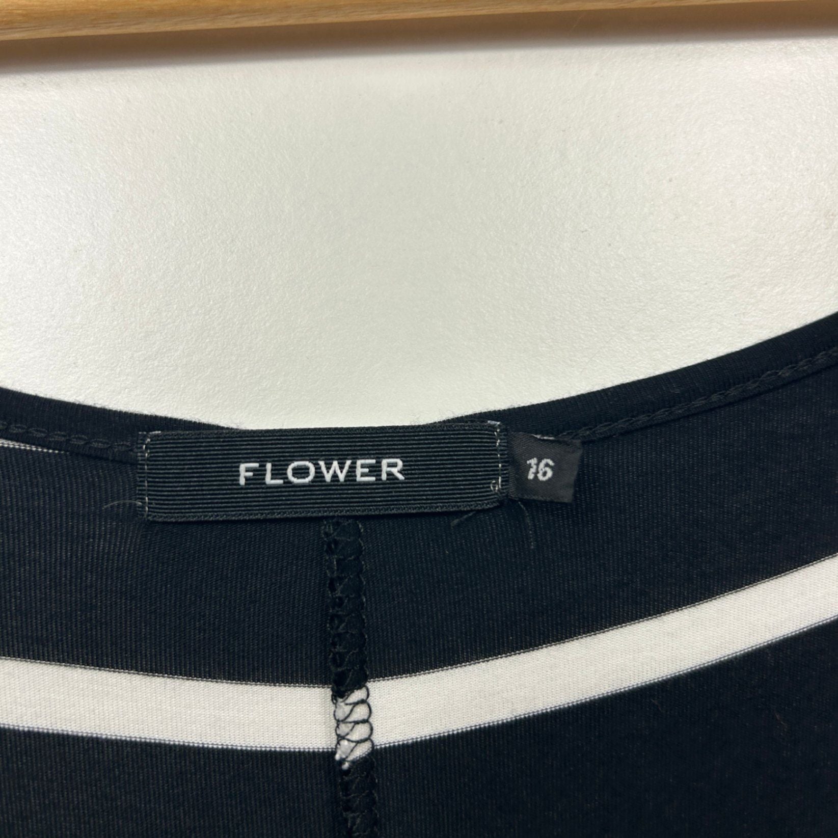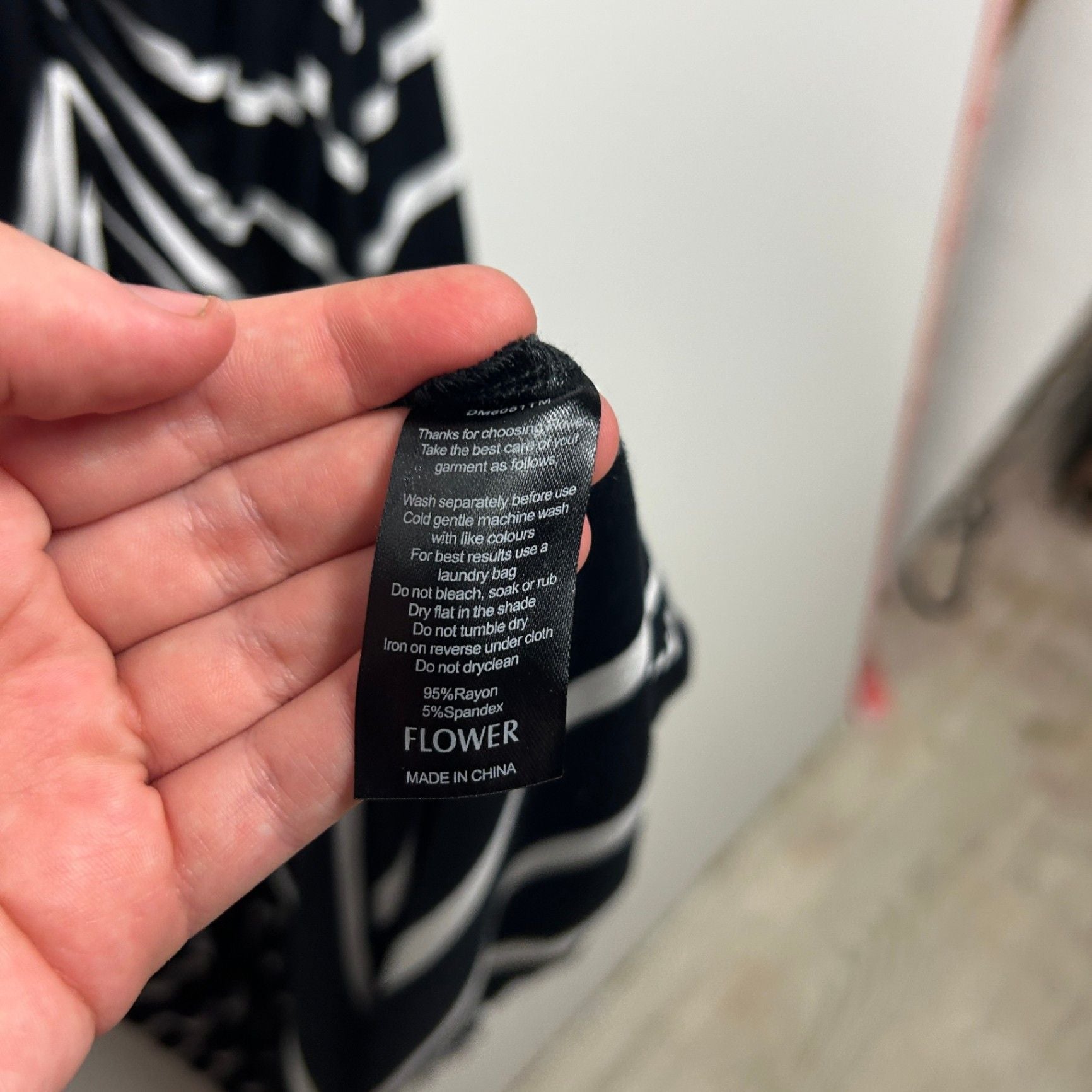 Flower Womens Black White Long Sleeve Striped Rayon Dress Size 16 Stretch