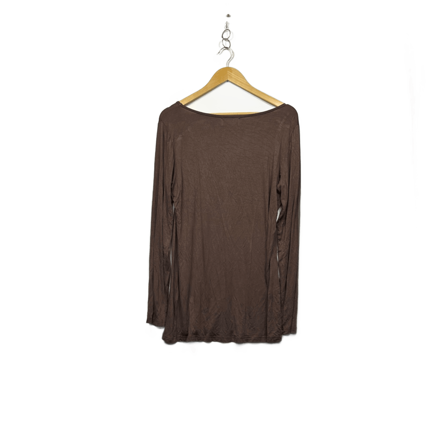 FREEZ Brown Viscose Blend Long Sleeve Round Neck Basic Top Size Large? 14 16