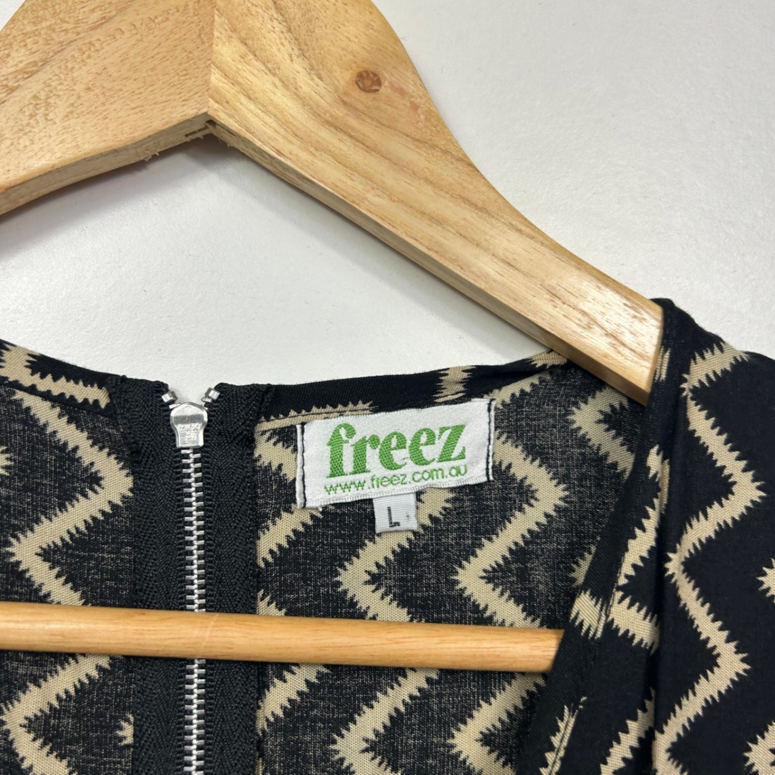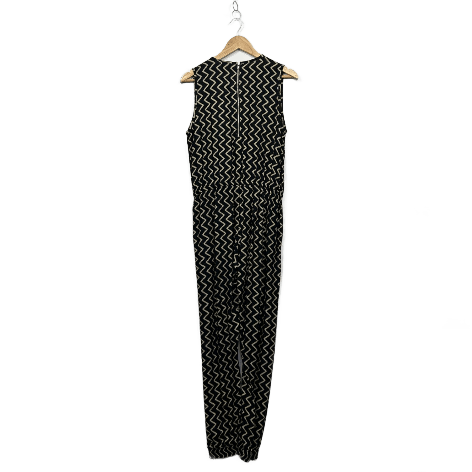 Freez Womens Black Beige Zigzag Print Pockets Sleeveless Jumpsuit Large
