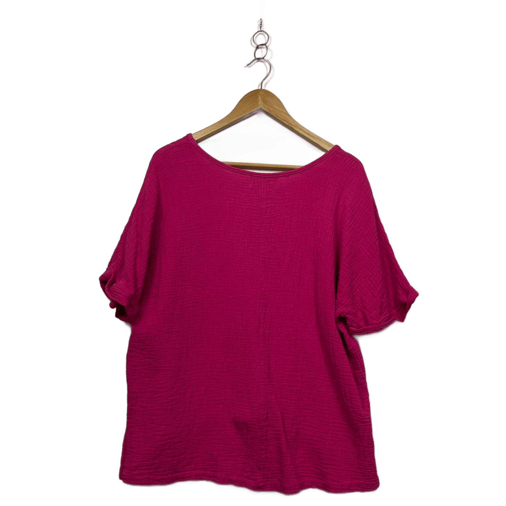 Freez Womens Pink Cotton Short Sleeve Round Neck Boxy Top Blouse Size XL