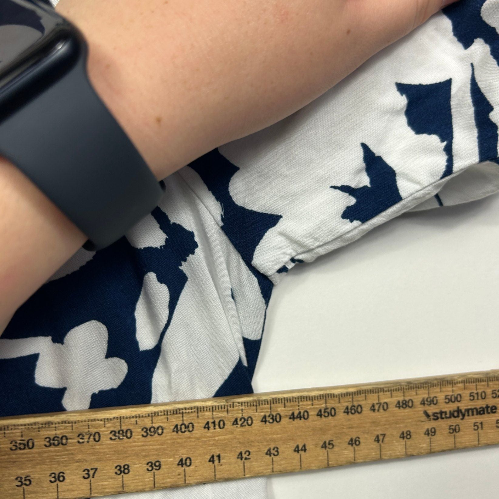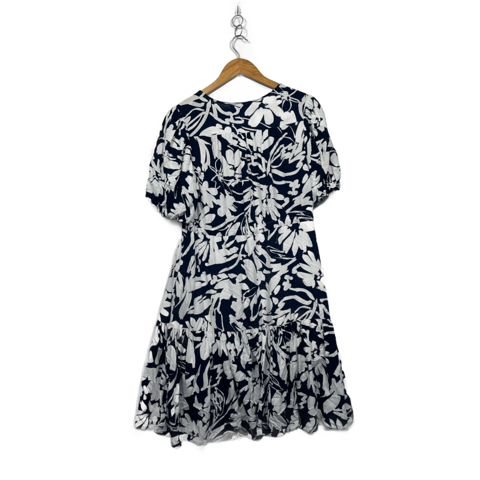 Fria Blue White Cotton Short Sleeve Floral Fit & Flare Dress Size 12