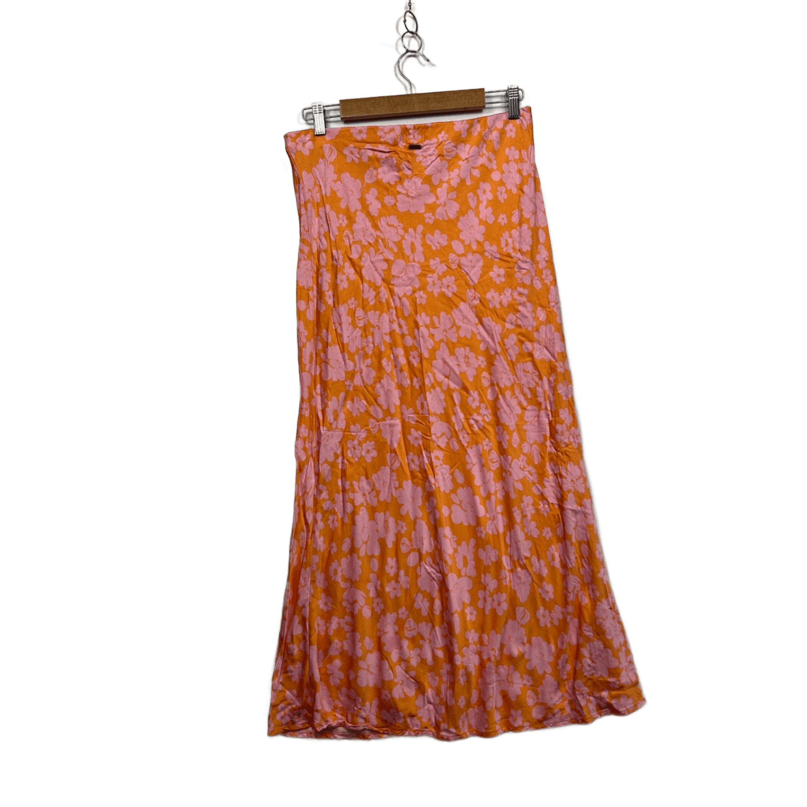Ghanda Womens Orange Pink Floral Boho Maxi Skirt Size Large