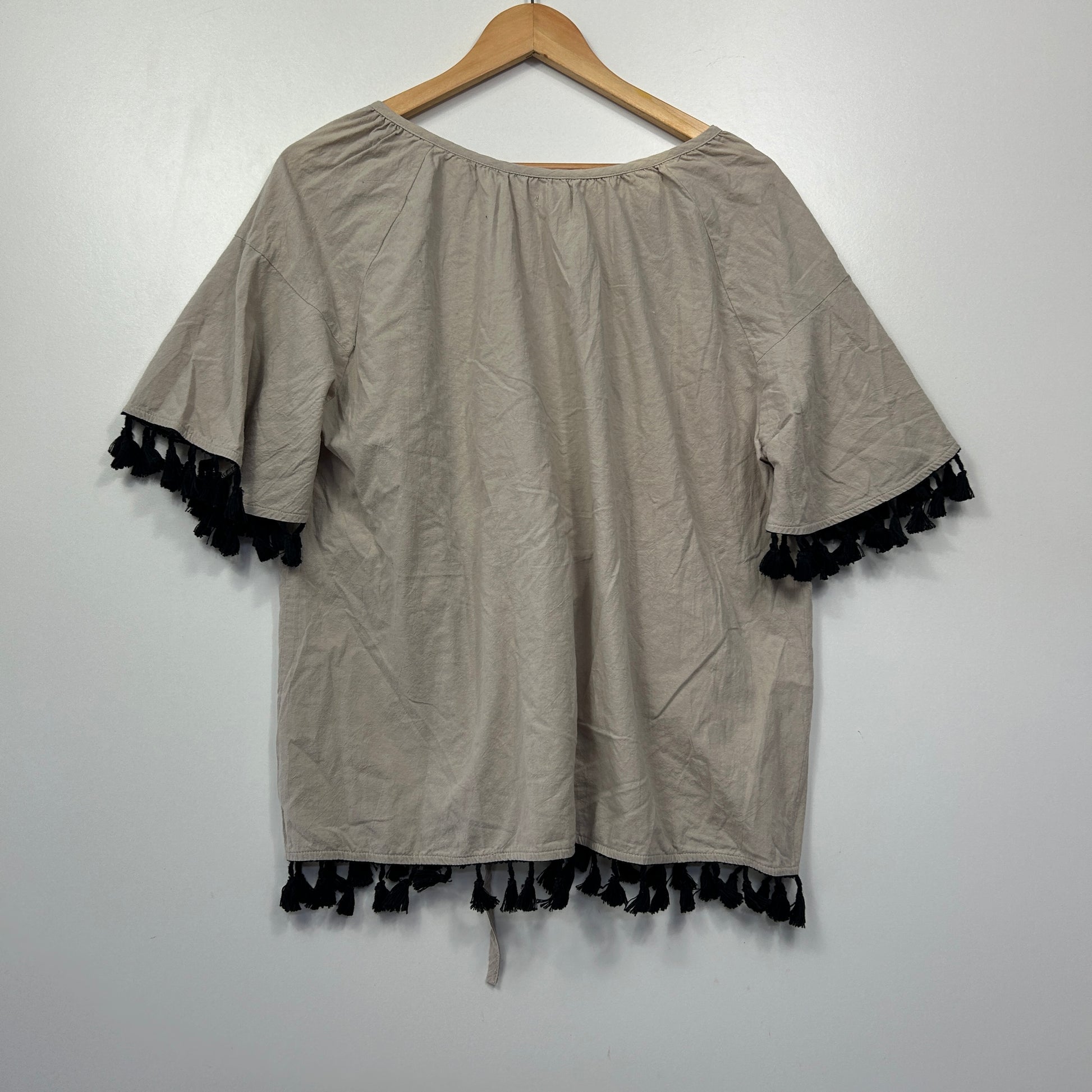 Guava Natural Beige Embroidered Tassel Top - Size L
