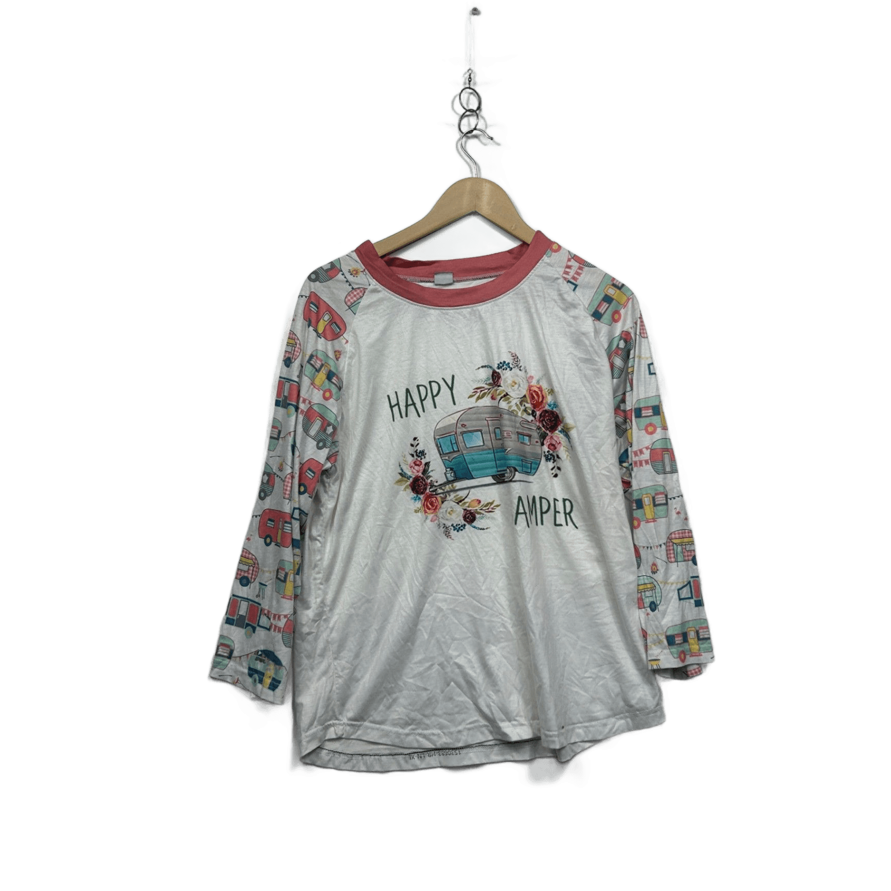 Happy Camper Camping Caravan Long Sleeve Casual Top T-shirt Size XL