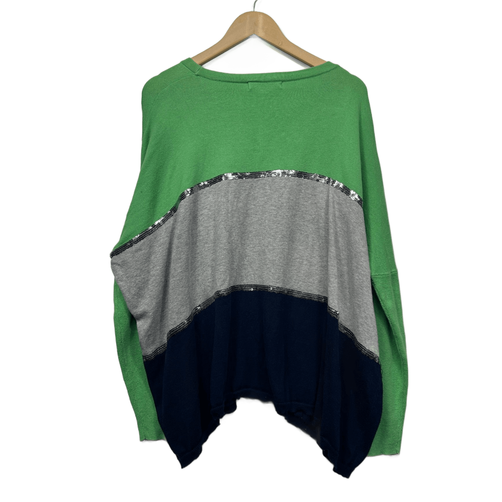 Haven Green Grey Navy Sequins Colourblock 100% Cotton Jumper - One Size