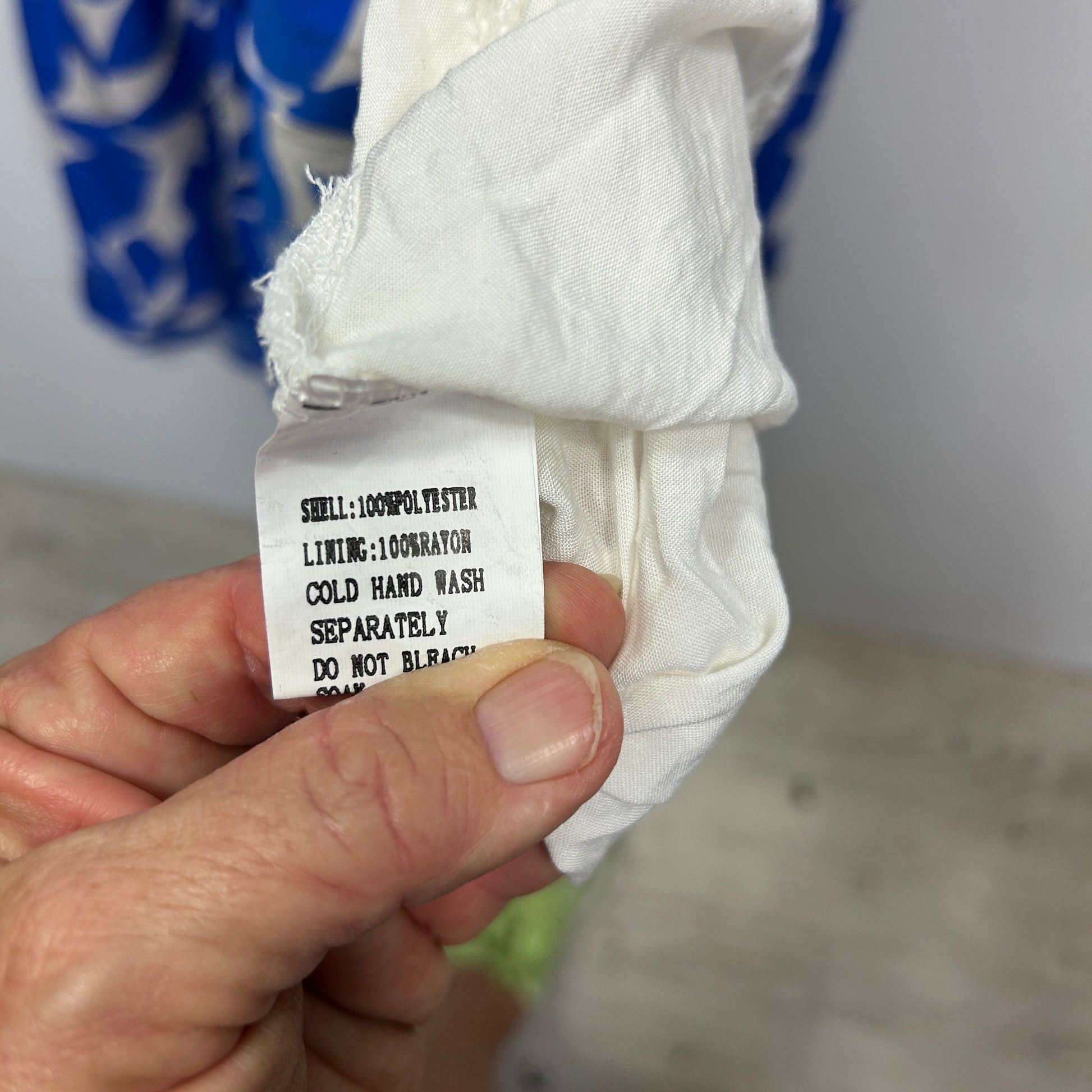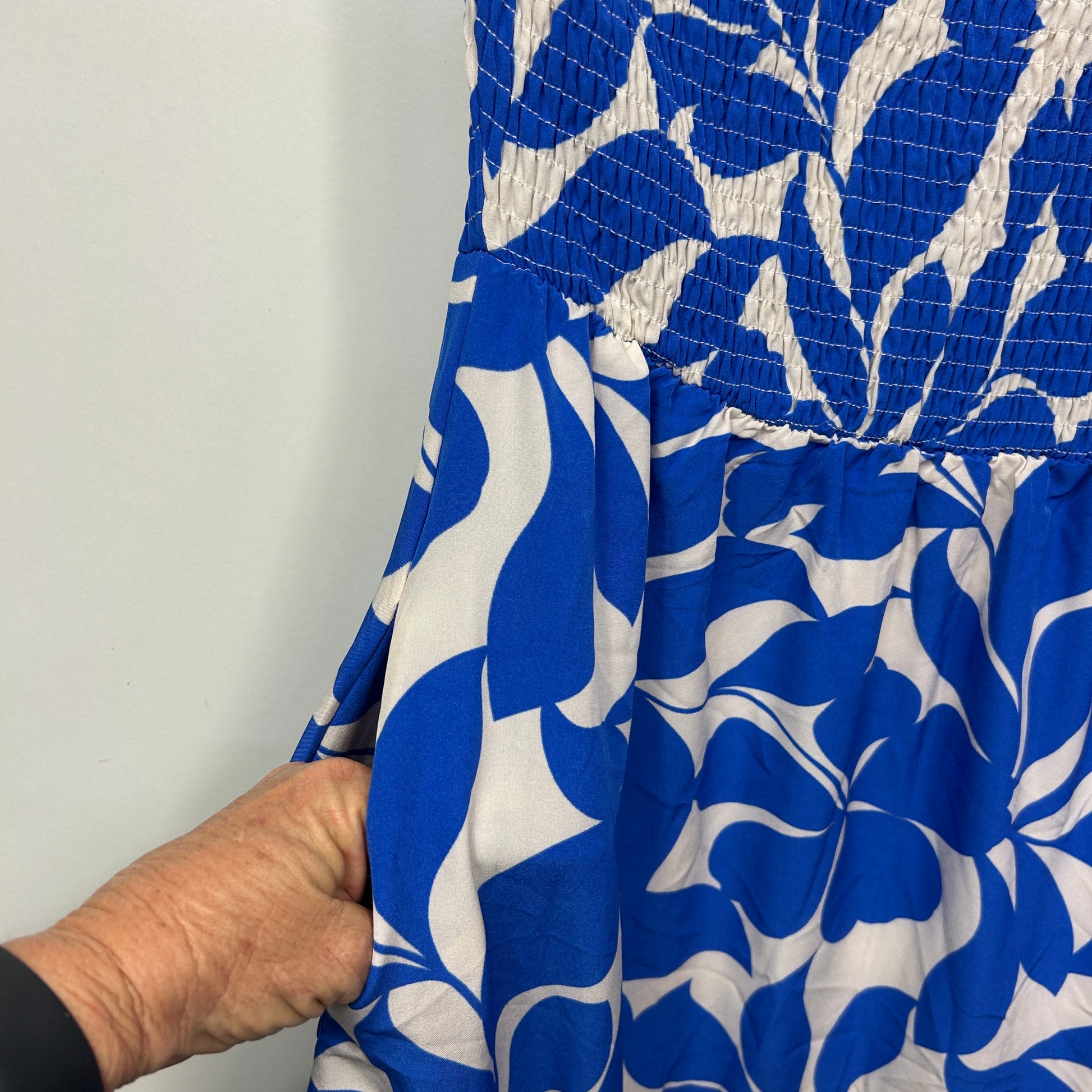 Henry Oscar Blue and White One Shoulder Maxi Dress - Size 18